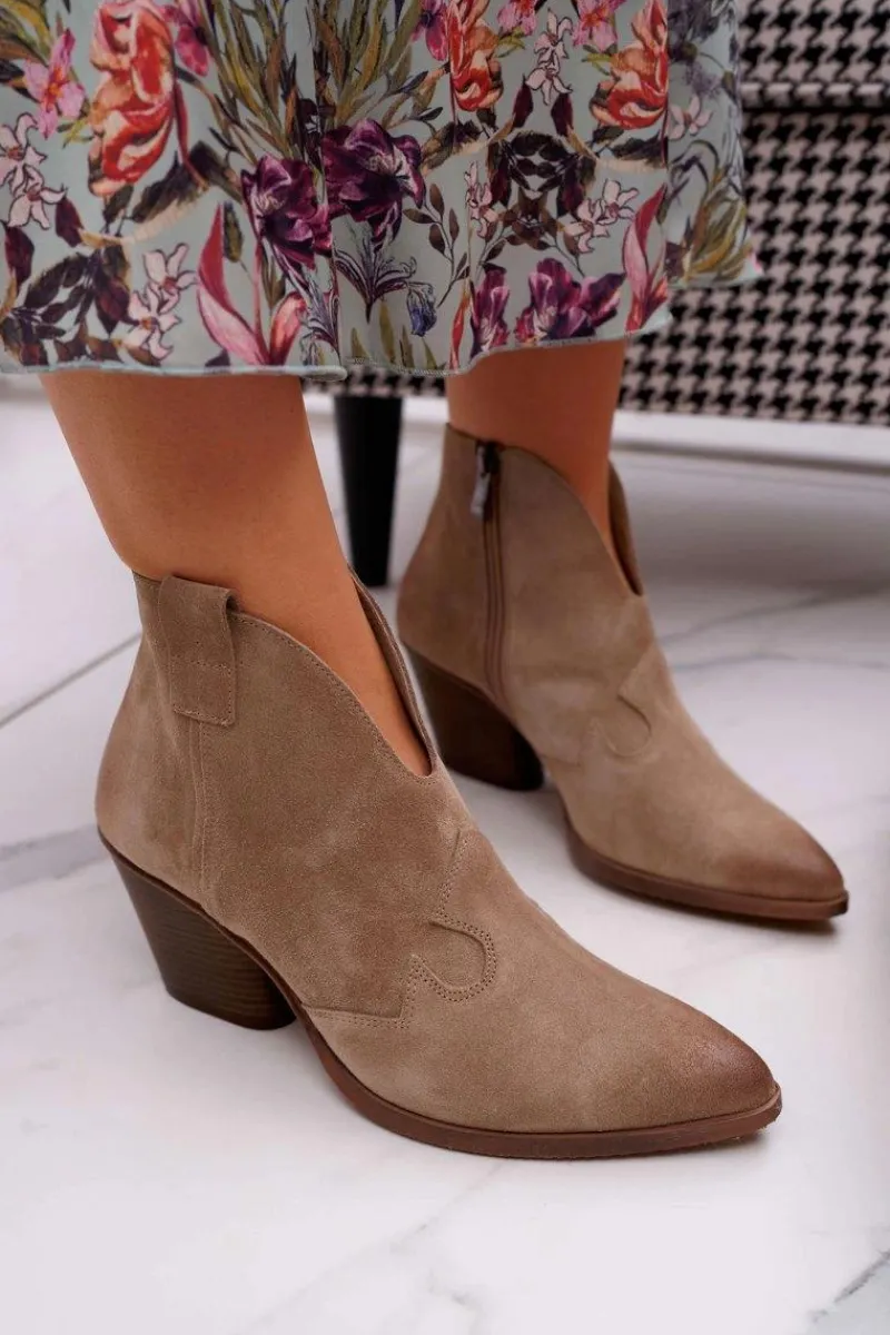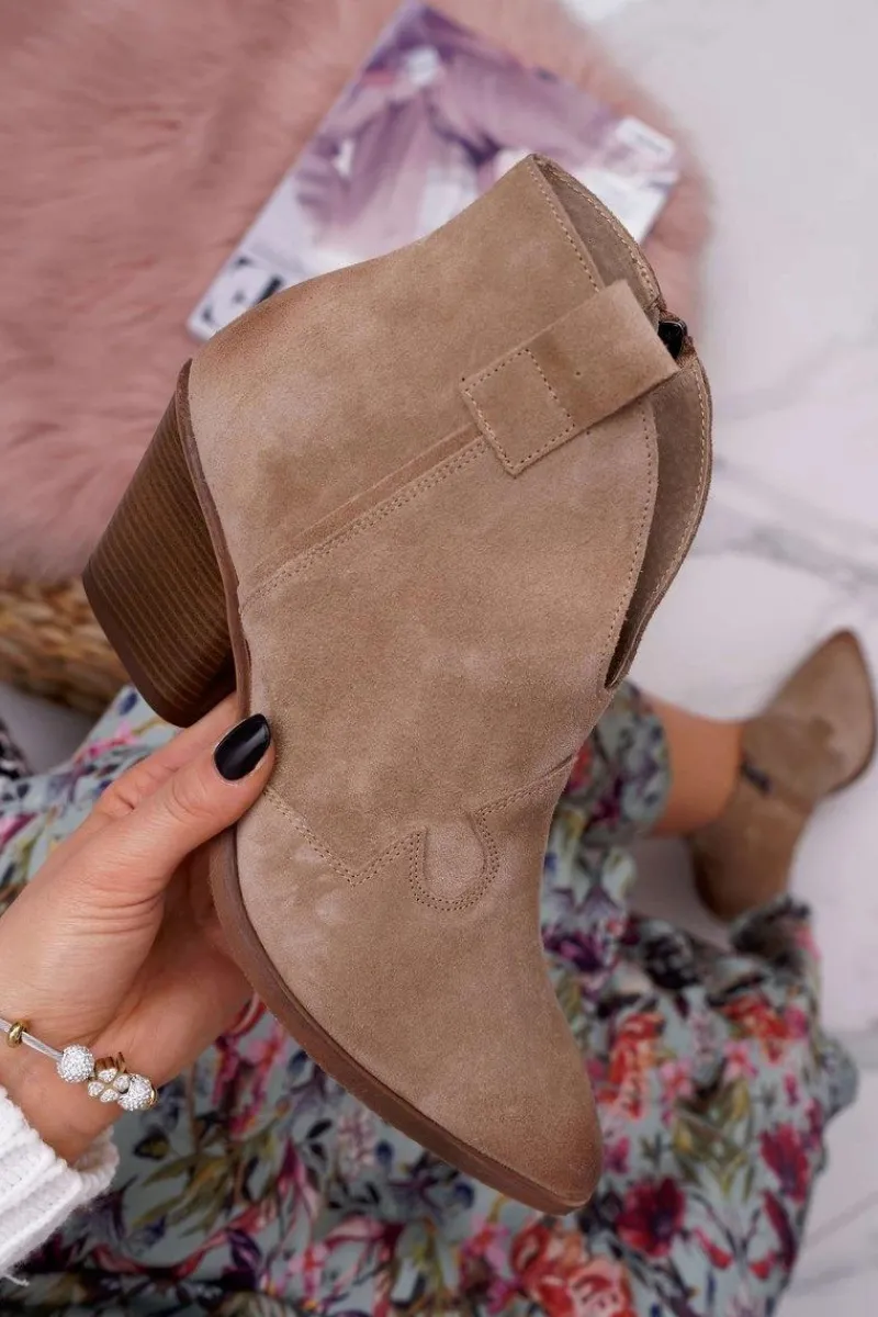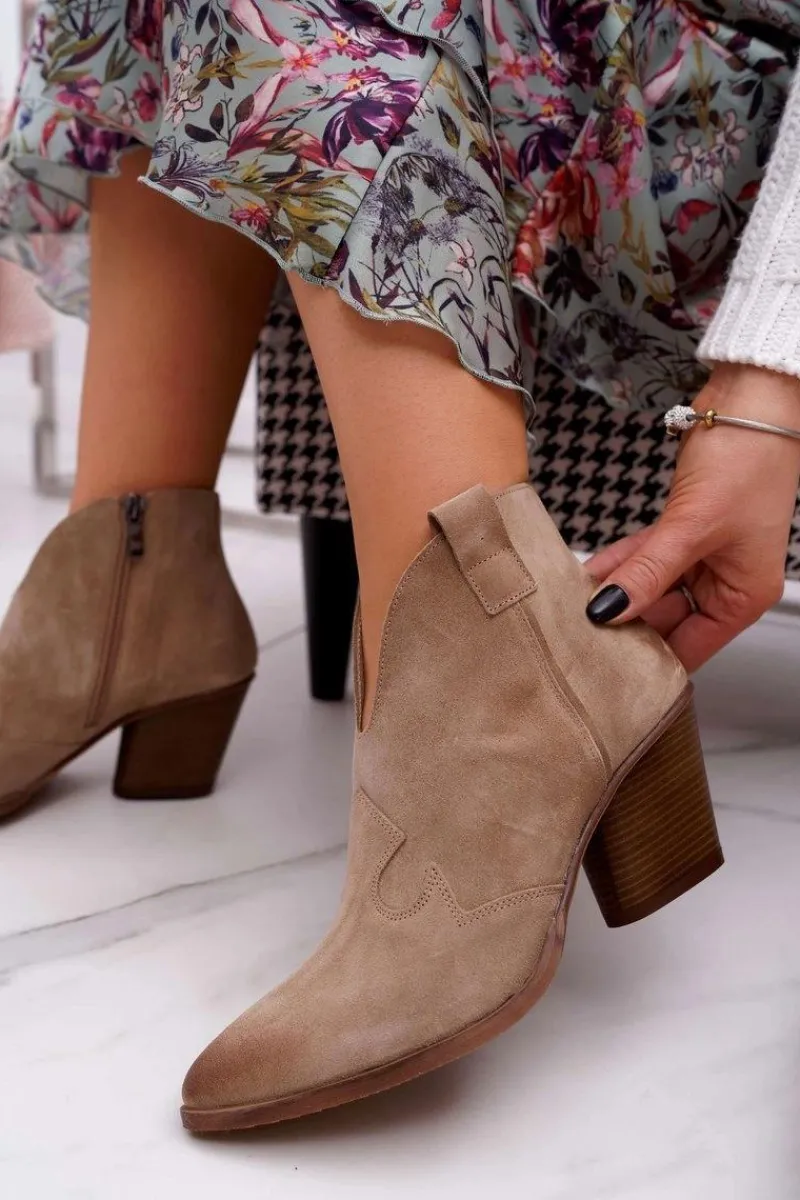 Discount Boto Botki Damskie Beżowe Skórzane na Obcasie Chavai