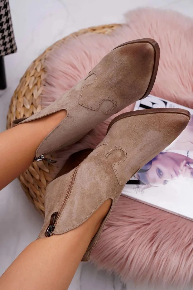Botki to nie tylko buty na chłodne dni. Świetnie sprawdzą się również podczas tworzenia wiosennych stylizacjach. Botki posiadają zamek z boku cholewki ułatwiający zakładanie.. W całości wykonane ze skóry zamszowej. Produkt Polski, co gwarantuje nam komfort oraz wysoką jakość wykonania. Idealne do zwiewnych sukienek oraz jeansowych spodni. Przy wyborze rozmiaru prosimy sugerować się tabelą rozmiarów.