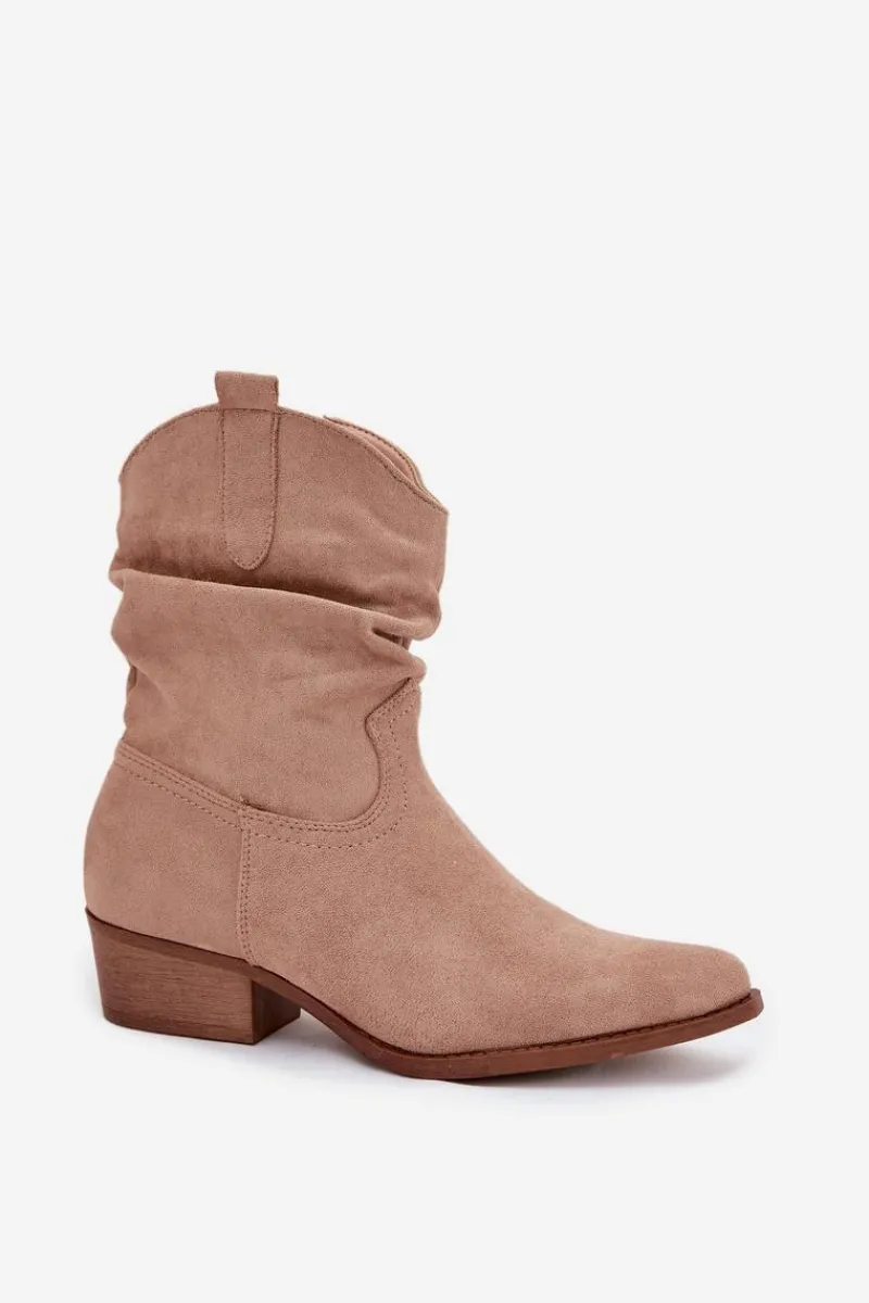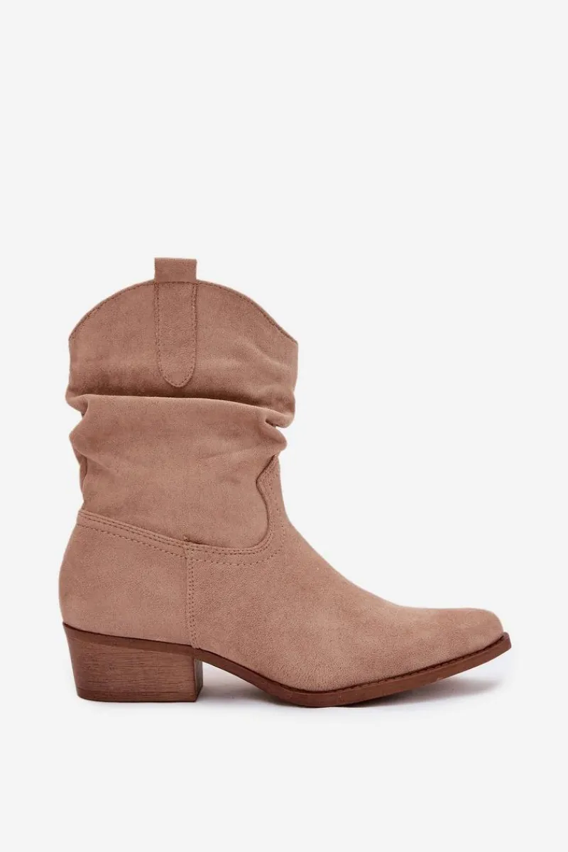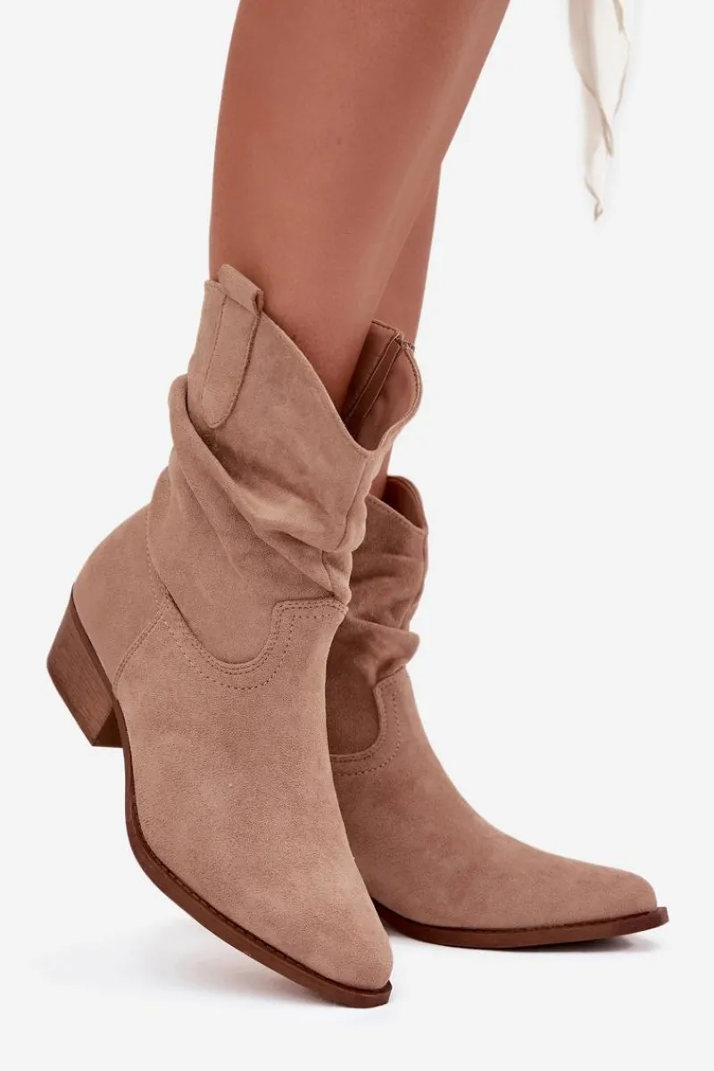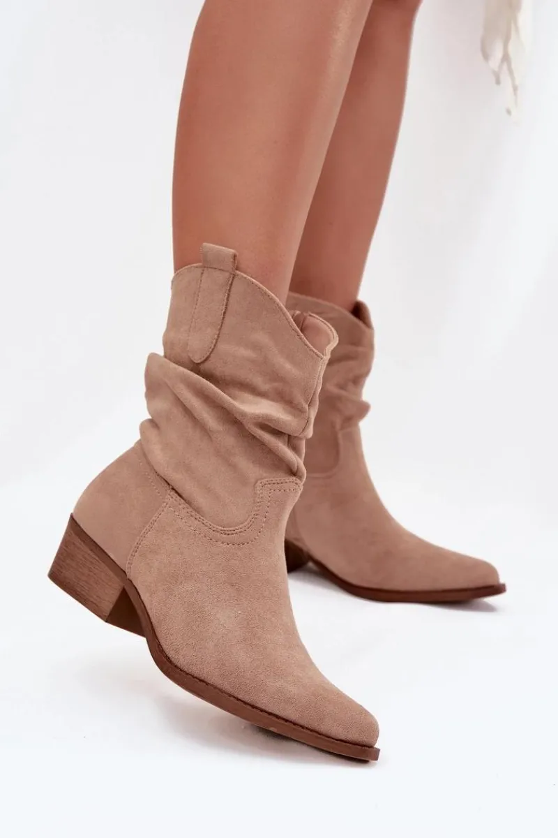 Botki damskie wykonane z eko zamszu. Osadzone na niskim obcasie w formie klocka, zapewniają stabilność i komfort przez cały dzień. Noski w kształcie migdała dodają im subtelności, a zamek błyskawiczny ułatwia zakładanie. Wyróżniają się oryginalną cholewką z marszczeniem, które nadaje im wyjątkowego charakteru. Te botki idealnie komponują się zarówno z codziennymi, jak i bardziej formalnymi stylizacjami. Przy wyborze rozmiaru prosimy sugerować się tabelą rozmiarów.