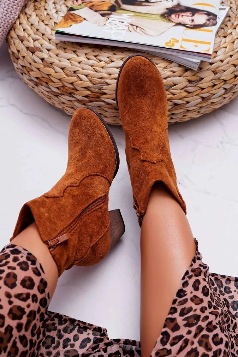 Discount Boto Botki Damskie Na Słupku Kowbojki Camel Nutriso
