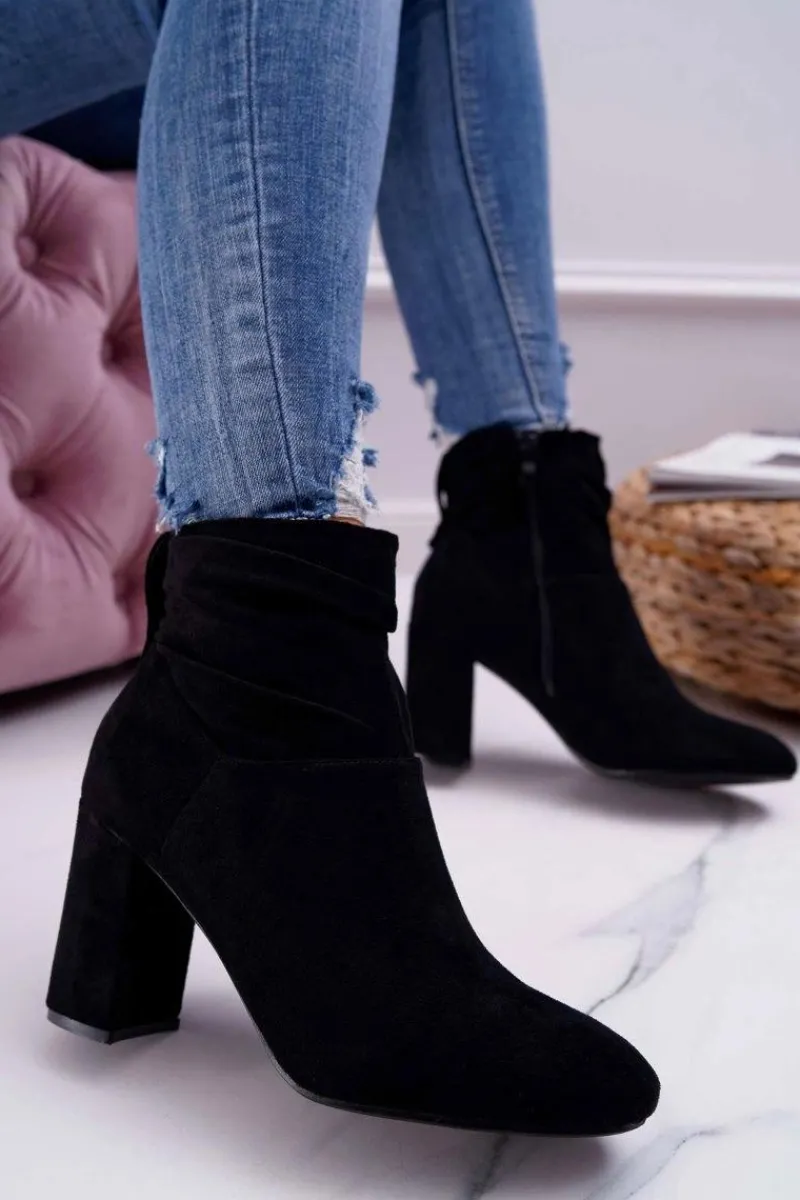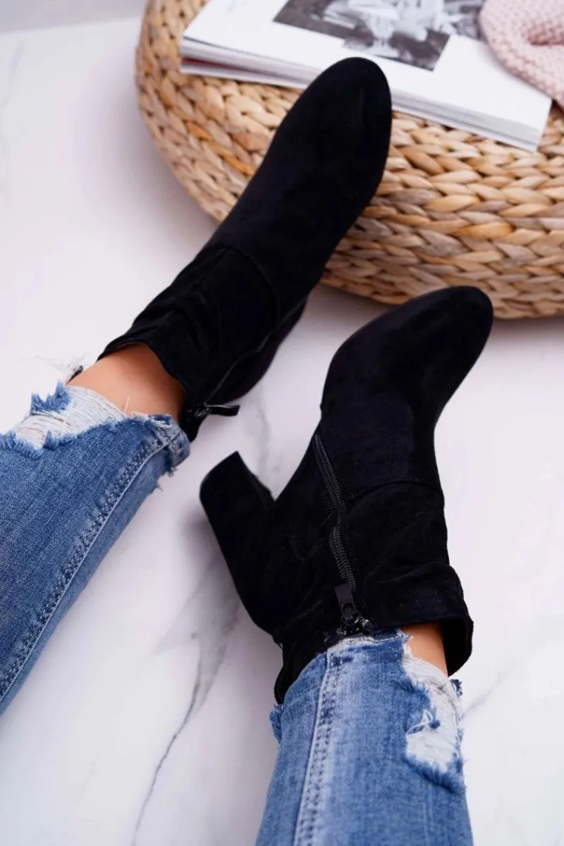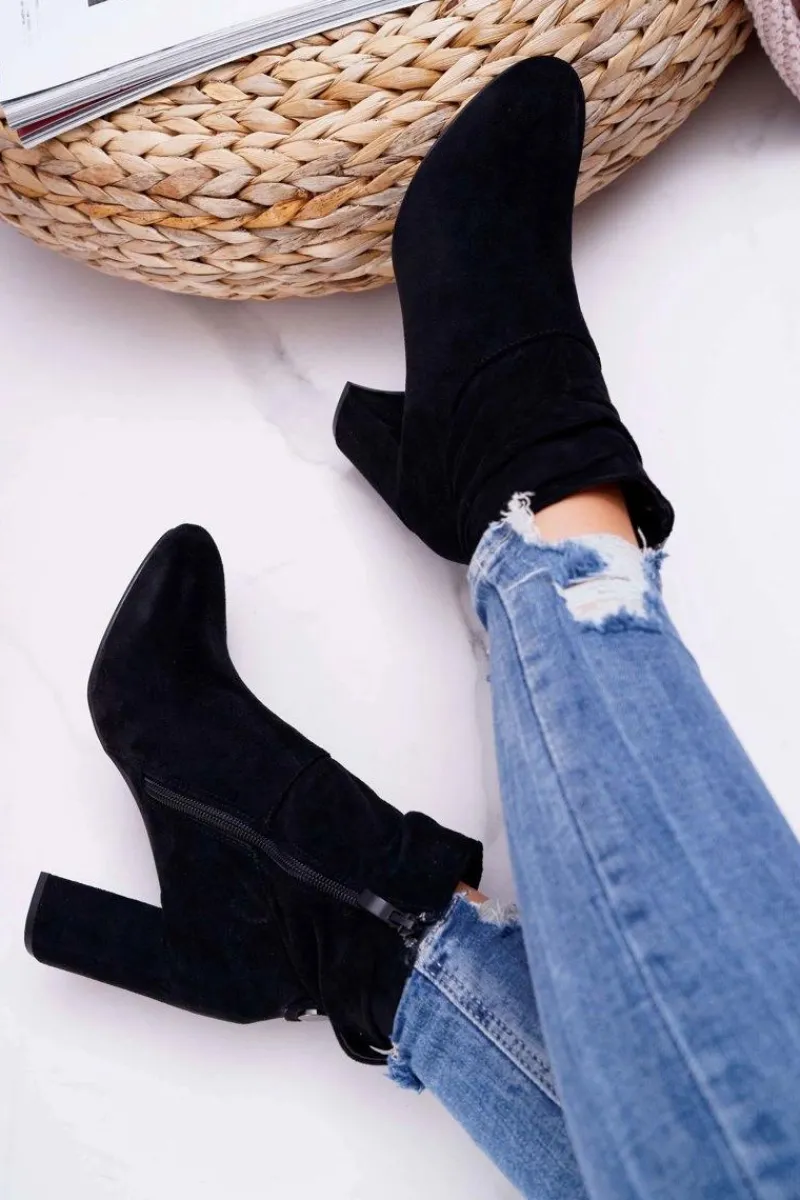 Discount Boto Botki Damskie Na Słupku Zamszowe Czarne Greybond