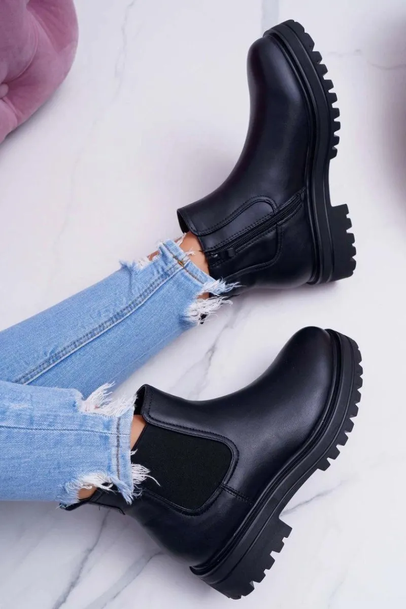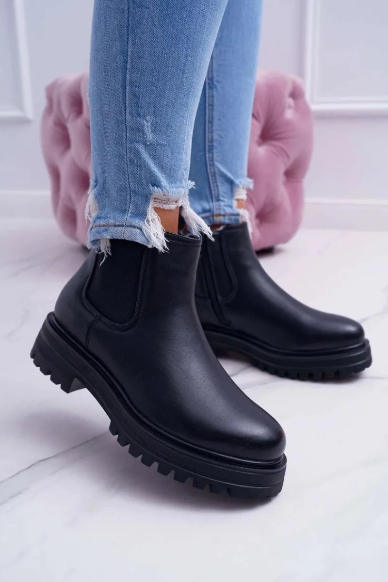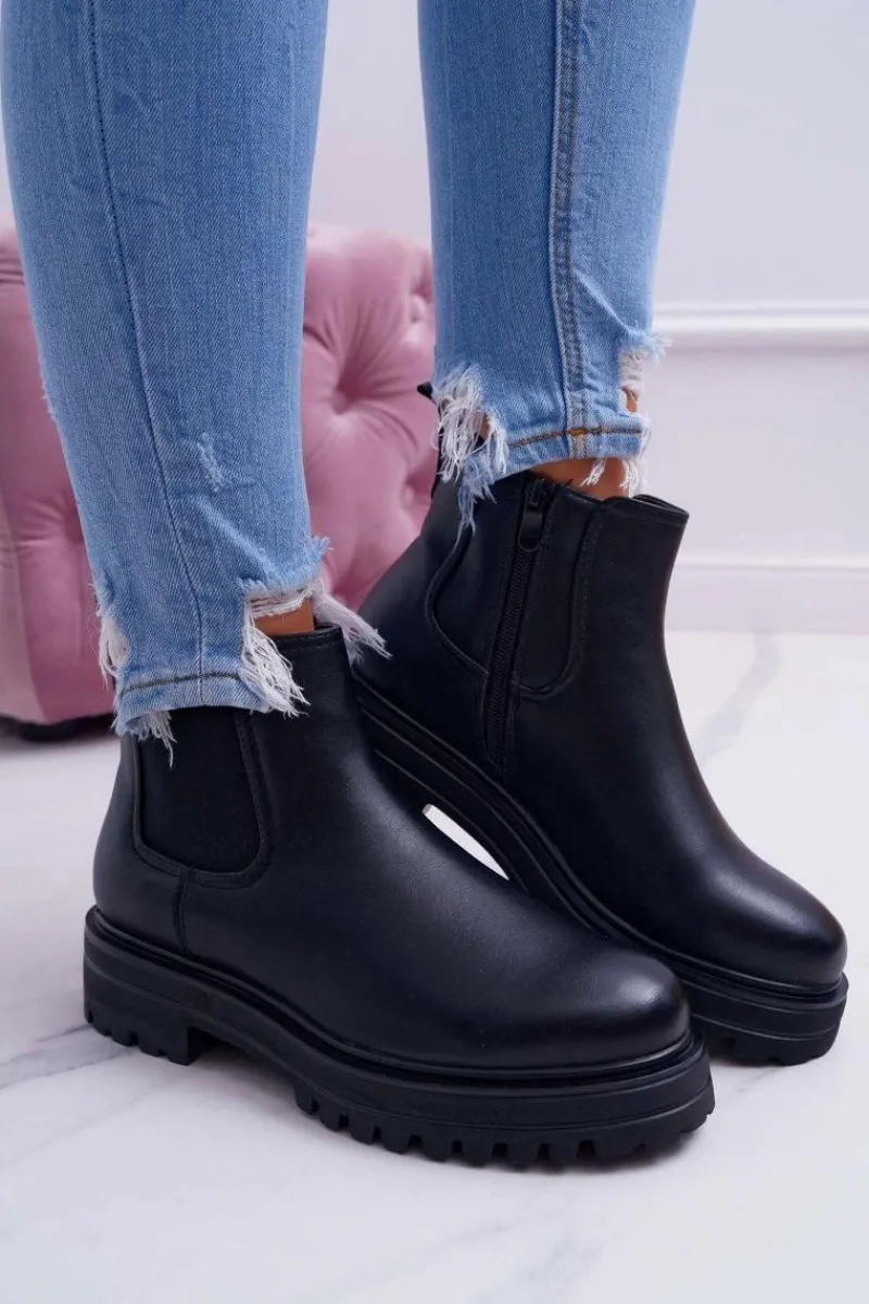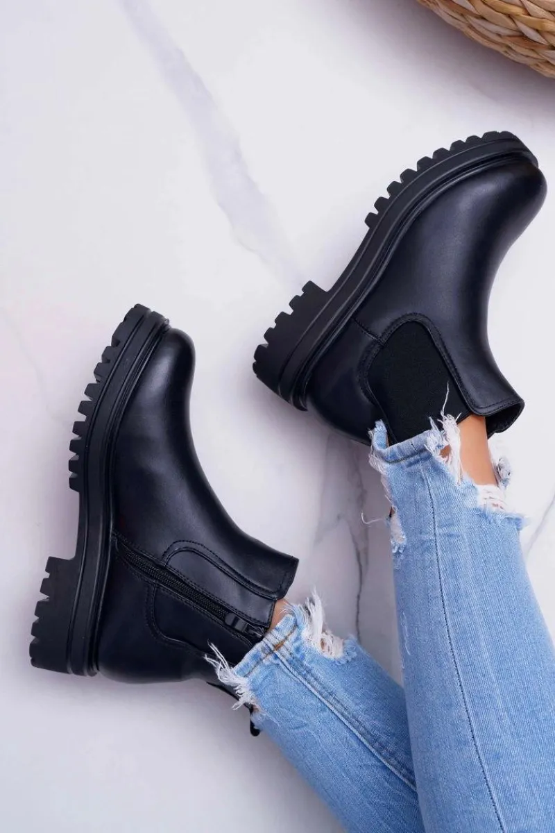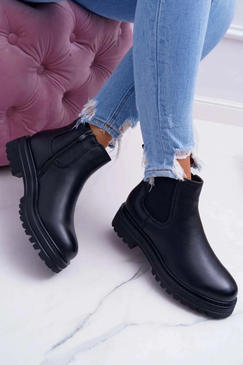 Discount Boto Botki Damskie Płaski Obcas Ciepłe Czarne Orion