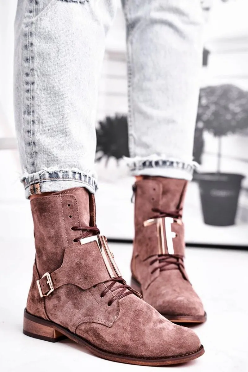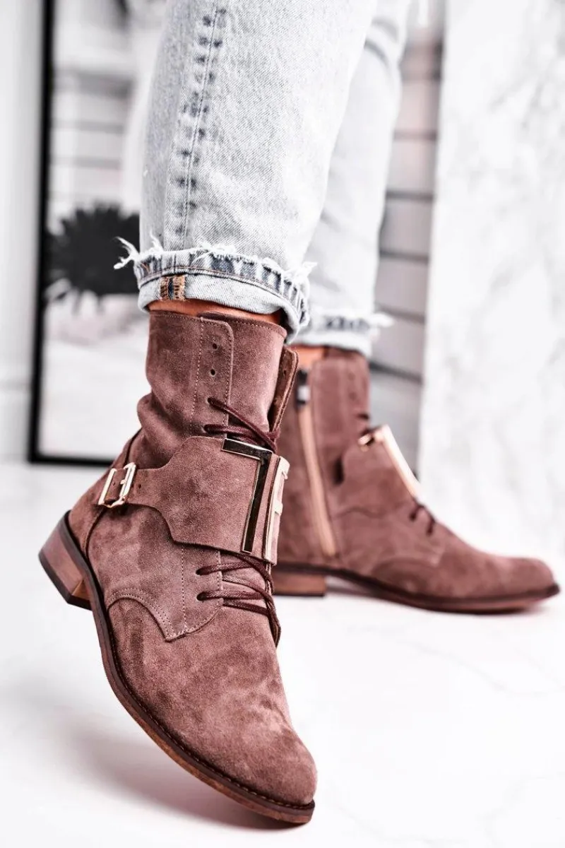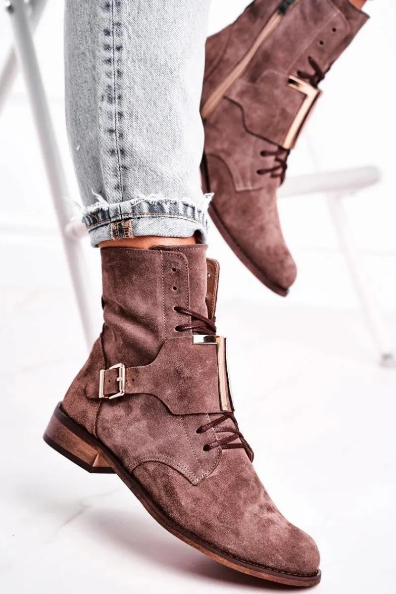 Discount Boto Botki Damskie Zamszowe Jasno Brązowe Nicole 2591