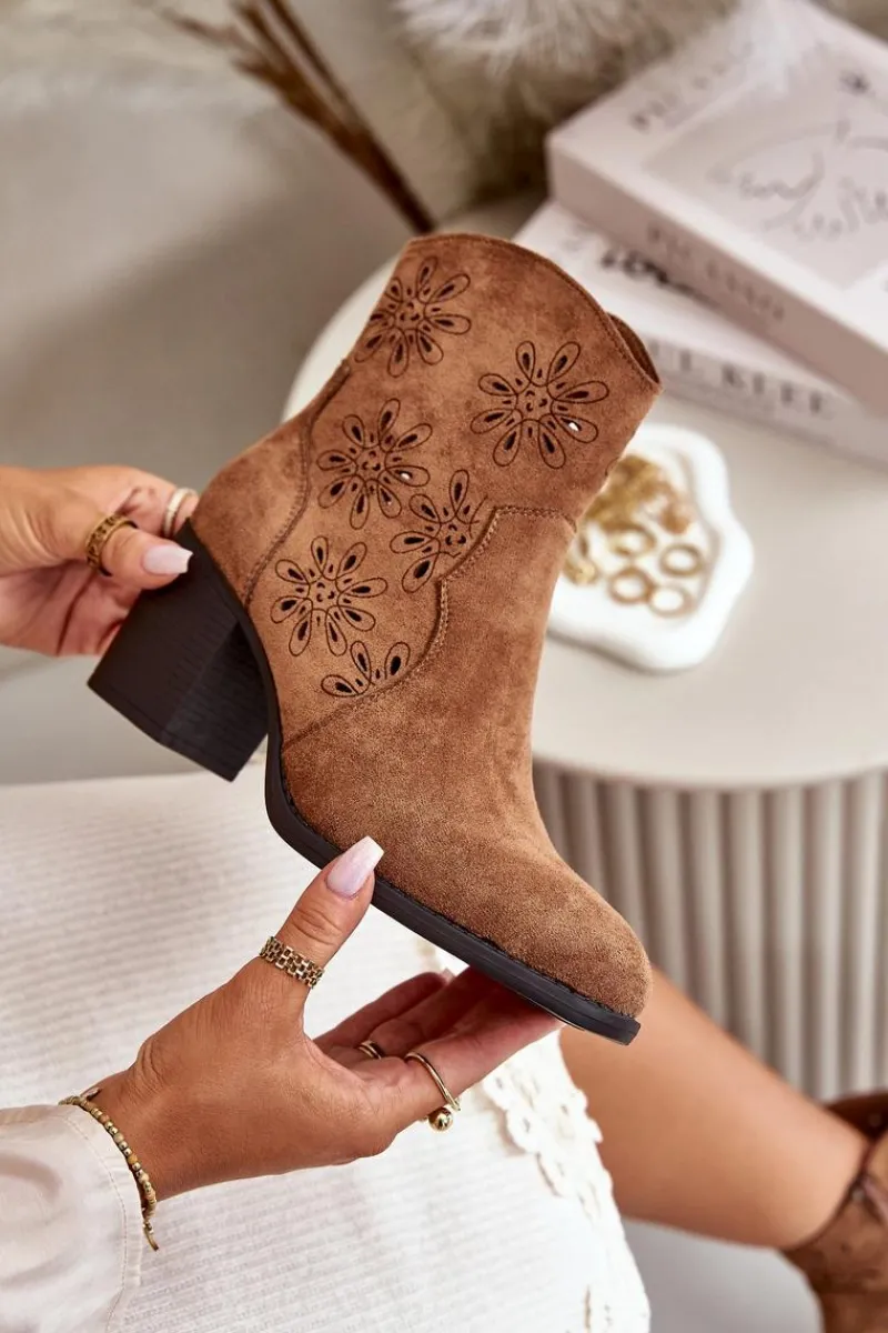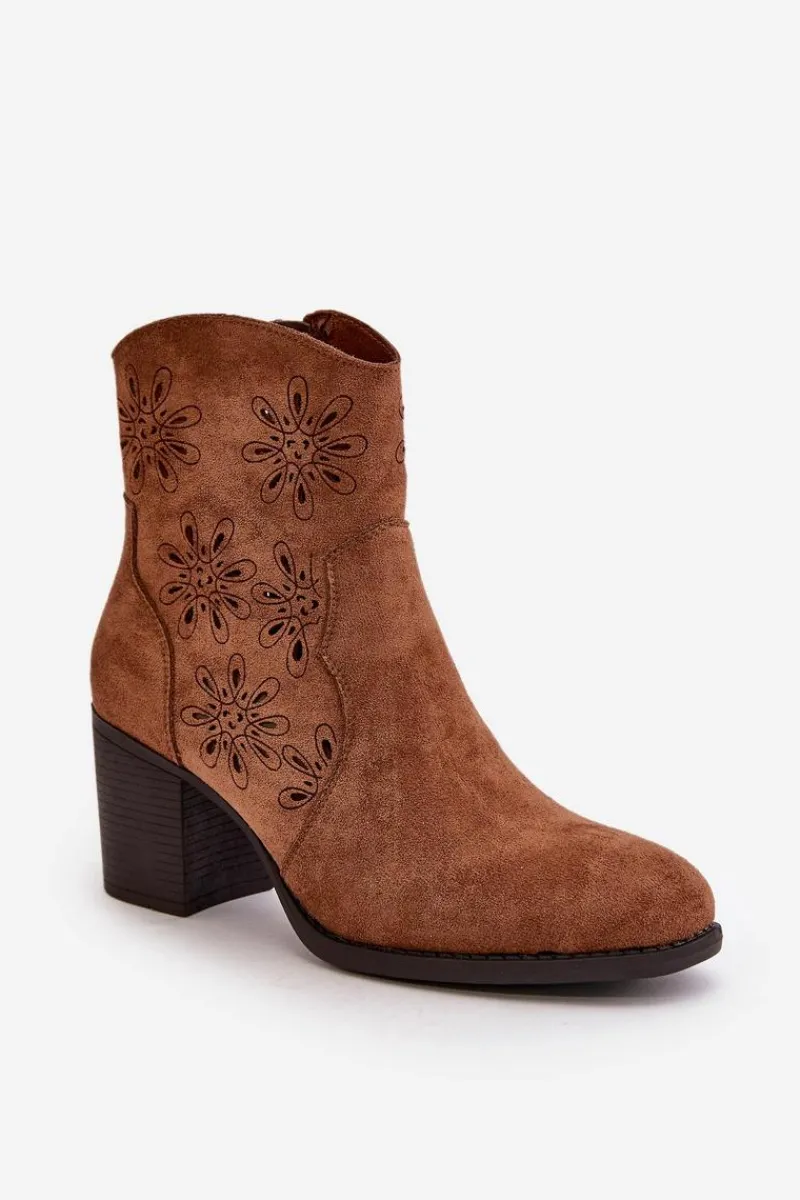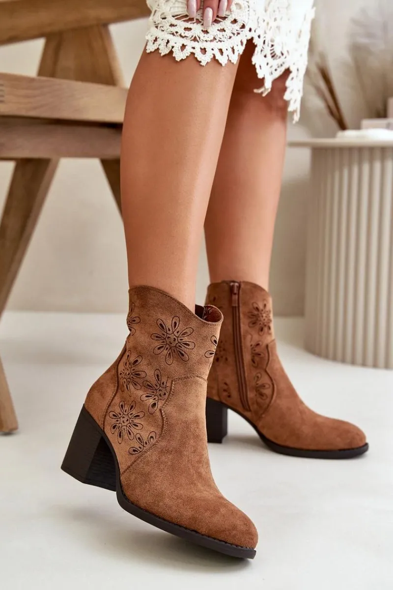 Botki damskie od marki Jezzi to doskonałe połączenie stylu i wygody, idealne na chłodniejsze dni. Model ten wyróżnia się eleganckim słupkowym obcasem, który zapewnia stabilność oraz subtelnie wydłuża sylwetkę. Zapinane na praktyczny zamek, botki są łatwe do zakładania i zdejmowania, co zwiększa komfort ich użytkowania. Ażurowa cholewka nadaje im unikalnego charakteru. Wkładka wykonana ze skóry naturalnej. Te stylowe botki doskonale komponują się zarówno z casualowymi, jak i bardziej eleganckimi stylizacjami. Przy wyborze rozmiaru prosimy sugerować się tabelą rozmiarów.