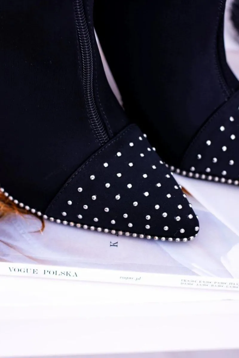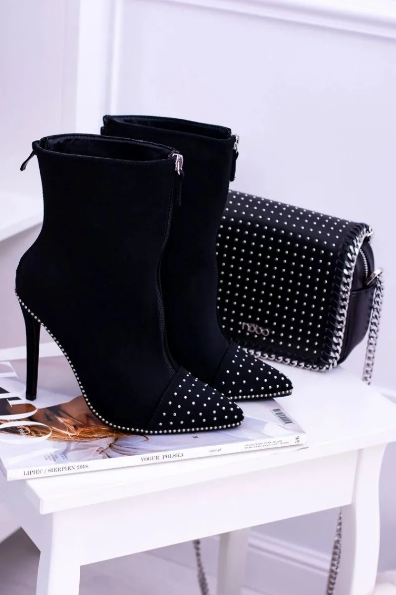 Discount Boto Czarne Zamszowe Botki na Szpilce Regio