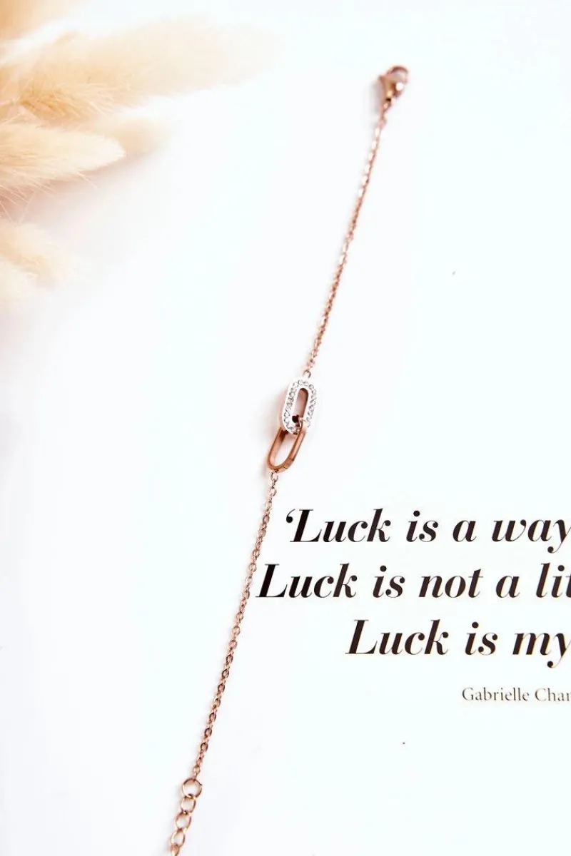 Damska bransoletka na cienkim łańcuszku typu celebrytka. Została wykonana ze stali nierdzewnej. Posiada możliwość regulacji długości. Na środku bransoletki znajduje się ozdoba w postaci dwóch owalnych elementów, z czego jeden jest przyozdobiony cyrkoniami. Taki rodzaj biżuterii jest świetnym dodatkiem do stylizacji nie tylko tych codziennych, ale i tych bardziej eleganckich. Model ten posiada klasyczne zapięcie. Koniecznie sprawdź także pozostałe modele biżuterii dostępnej w naszej ofercie!