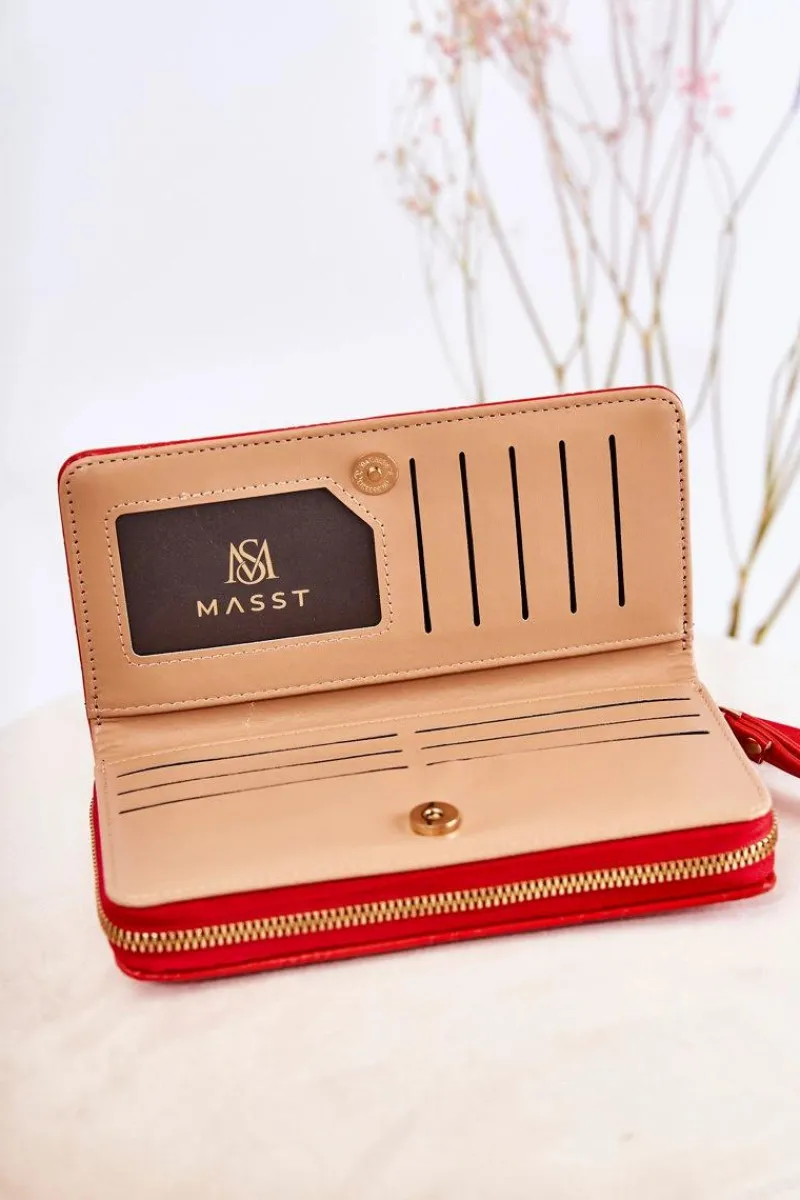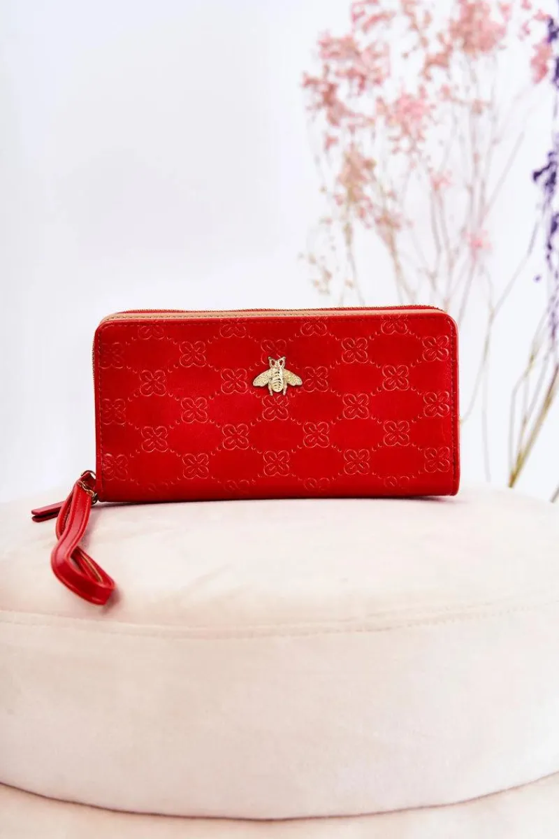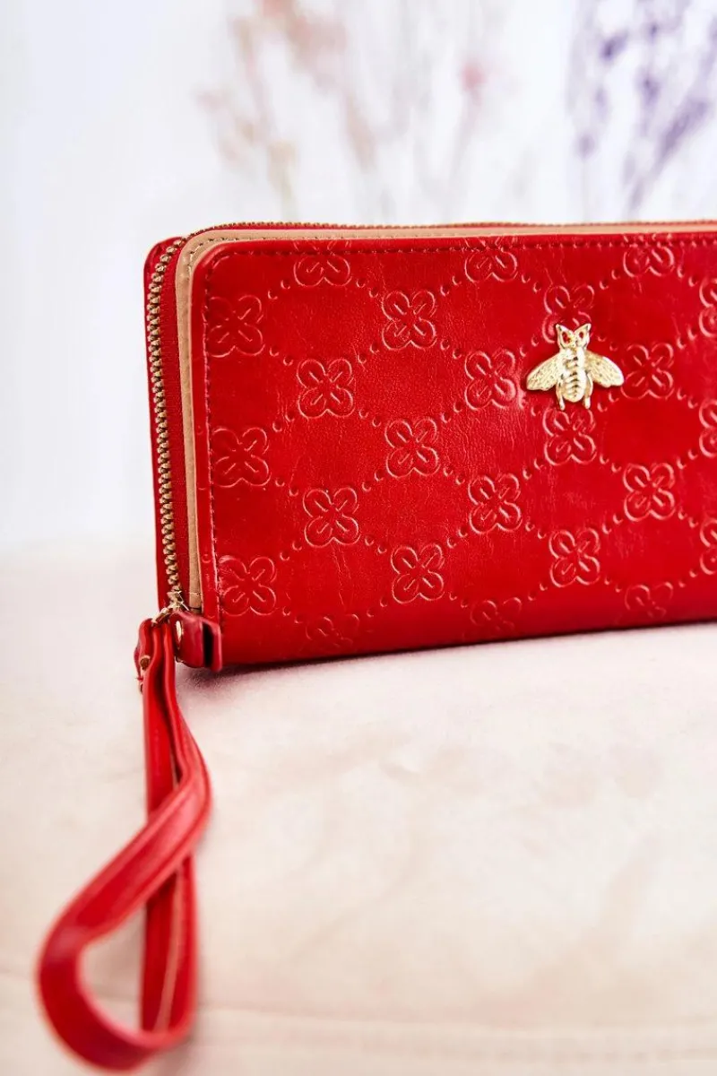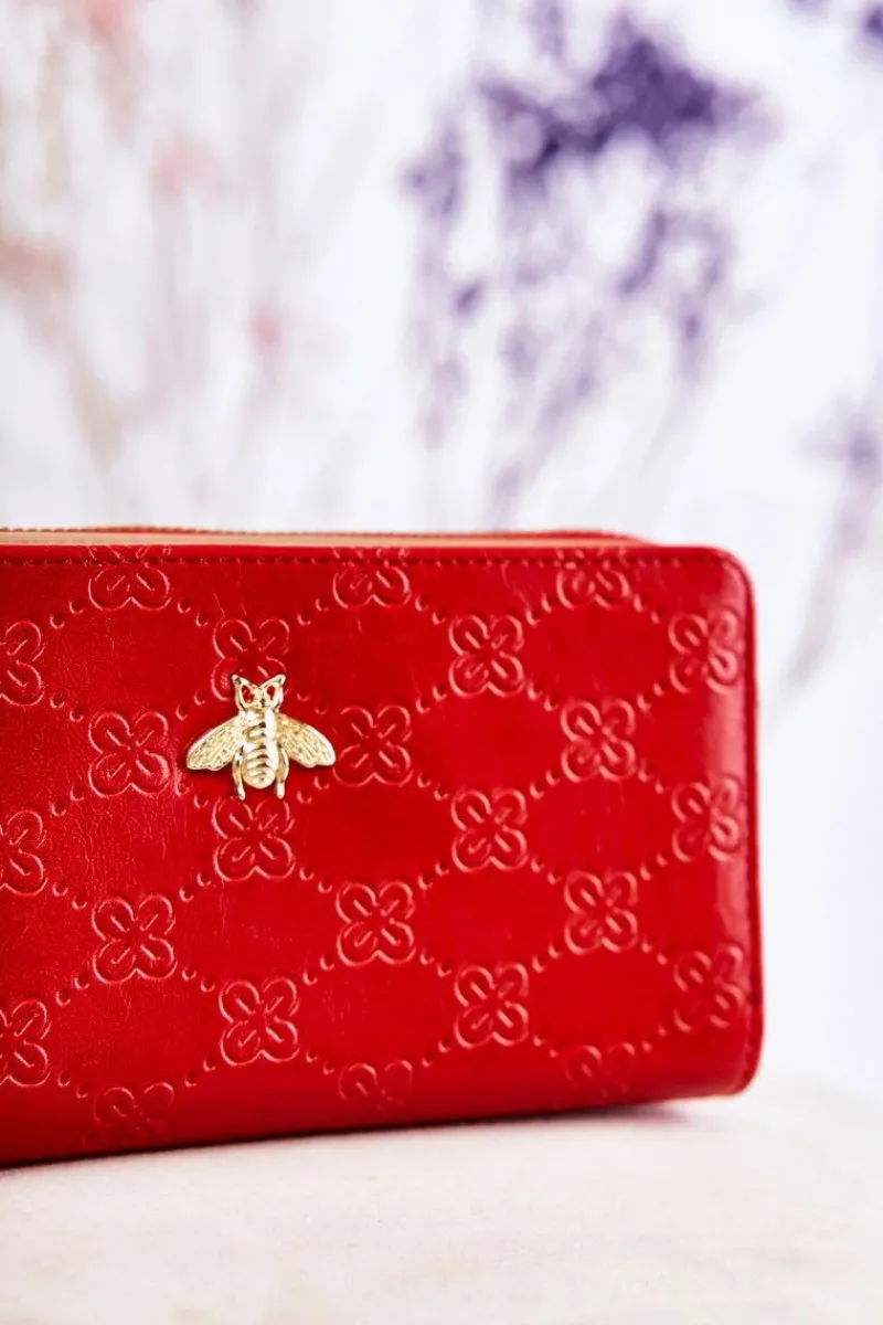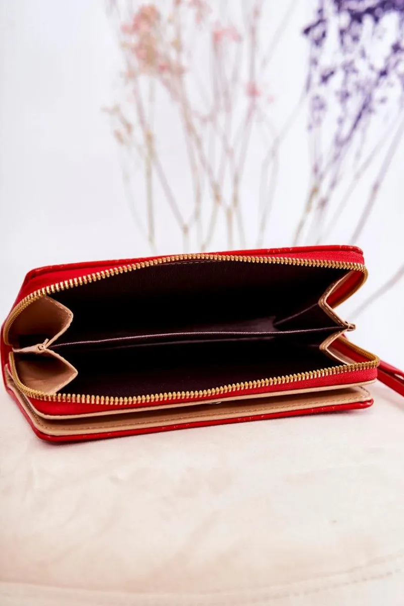 Duży i pojemny damski portfel został wykonany z wysokiej jakości eko skóry z tłoczeniem na całości. Zapinany na magnes oraz suwak. W środku posiada wiele kieszeni na karty czy wizytówki, a także miejsce na fotografię. Zamykana na suwak kieszonka pomieści bilony oraz banknoty. Na przodzie mieści się modny emblemat. Portfel dodatkowo posiada dopinany pasek. Ten niezbędny dodatek każdej kobiety sprawdzi się także idealnie jako prezent!