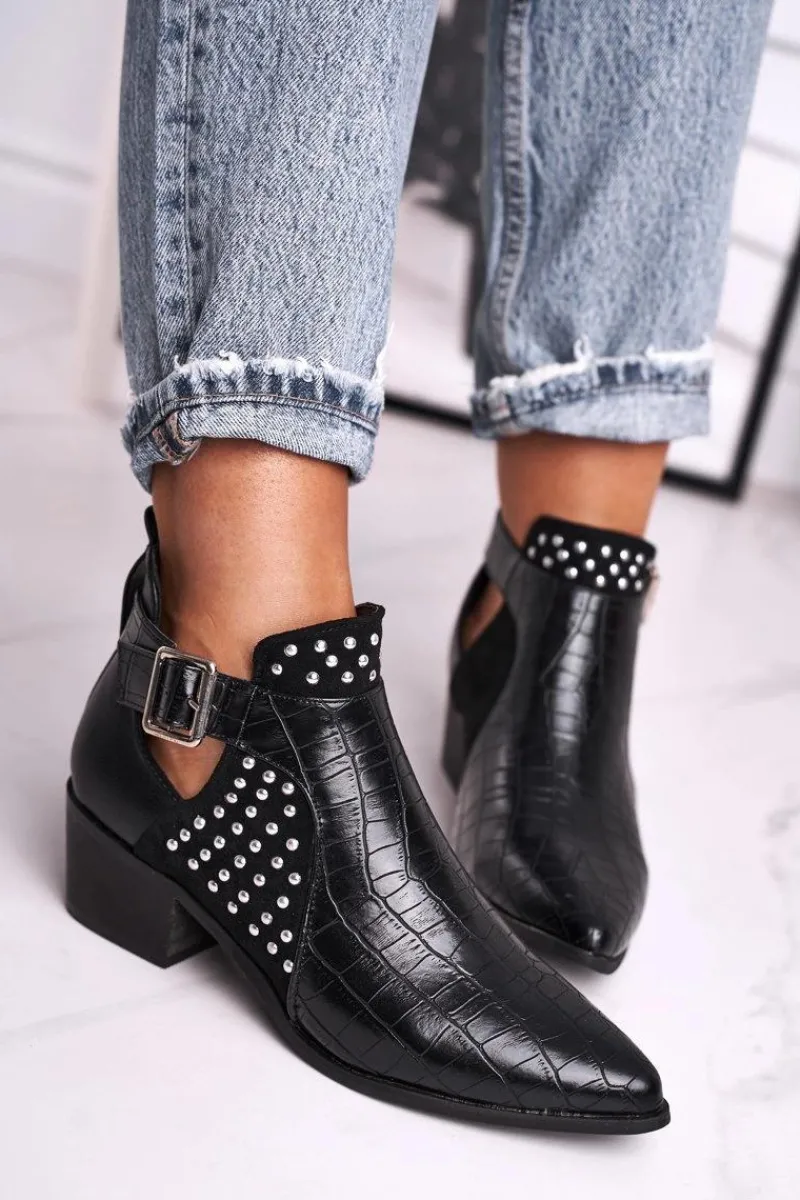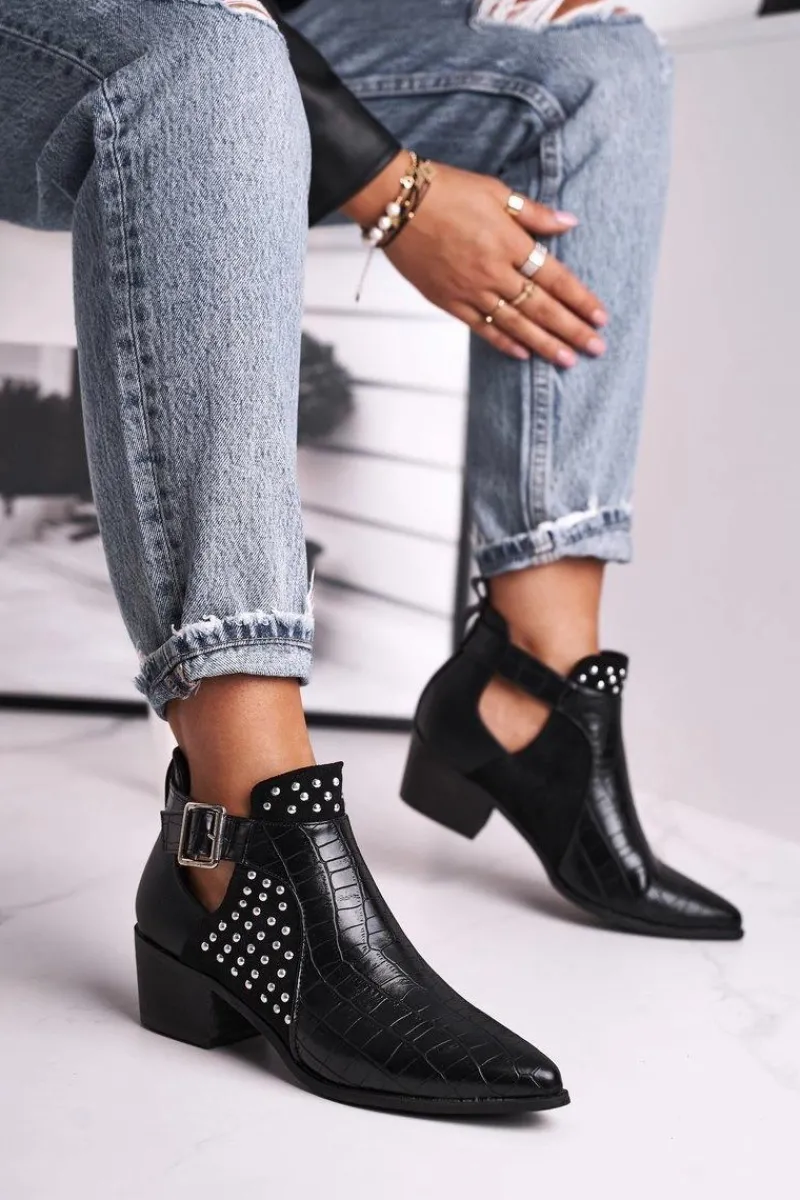 Discount Boto Damskie Botki Na Obcasie Klamra Czarne Rontra