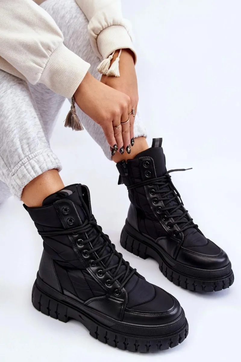 Botki Ariadna to nowość tego sezonu! Świetnie prezentują się z zimowymi stylizacjami. Cholewka jest wykonana z połączenia tkaniny oraz skóry ekologicznej. Wnętrze zostało wykończone ciepłym materiałem Przy wyborze rozmiaru prosimy sugerować się tabelą rozmiarów.