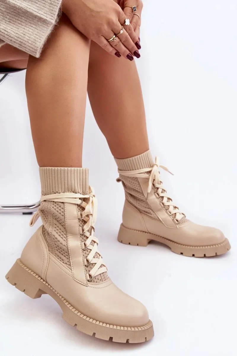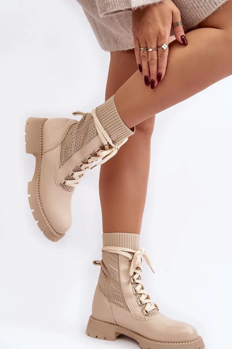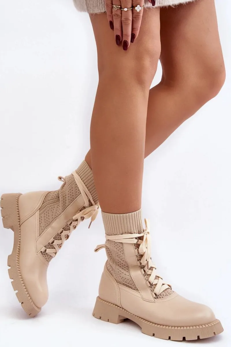 Modne botki damskie zostały wykonane z połączenia eko skóry I materiału tekstylnego. Model wsuwany oraz dodatkowo posiada sznurowanie. Osadzone na platformie oraz płaskim obcasie. Miękka, eko skórzana wkładka zapewni komfort podczas użytkowania. Noski zaokrąglone. Cholewka za kostkę. Koniecznie powinnaś je mieć! Przy wyborze rozmiaru prosimy sugerować się tabelą rozmiarów.