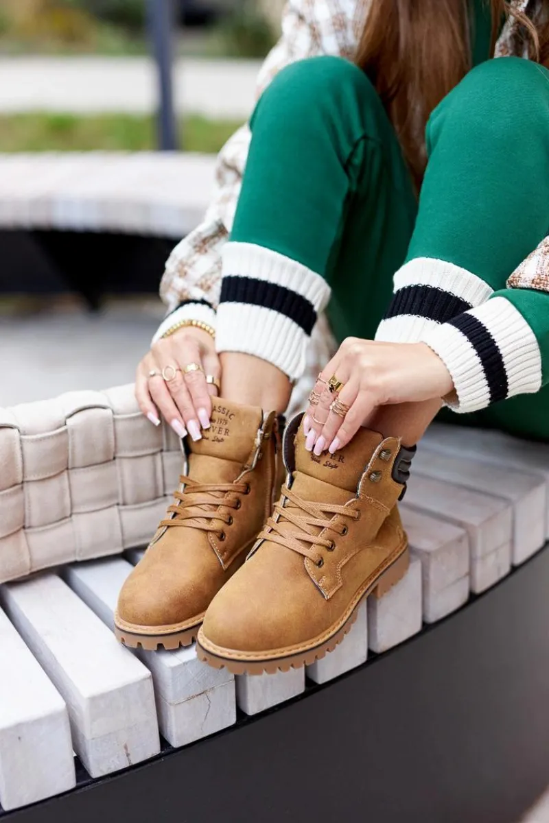 Trapery wykonane zostały z eko skóry. W środku posiadają ocieplenie w postaci miękkiego futerka. Zapinane na suwak oraz wiązane. Idealne na długie spacery w chłodne dni. Buty posiadają przeszycia po bokach i na górze cholewki. Ozdobne tłoczenie na języku. Antypoślizgowa podeszwa. Przy wyborze rozmiaru prosimy sugerować się tabelą rozmiarów.