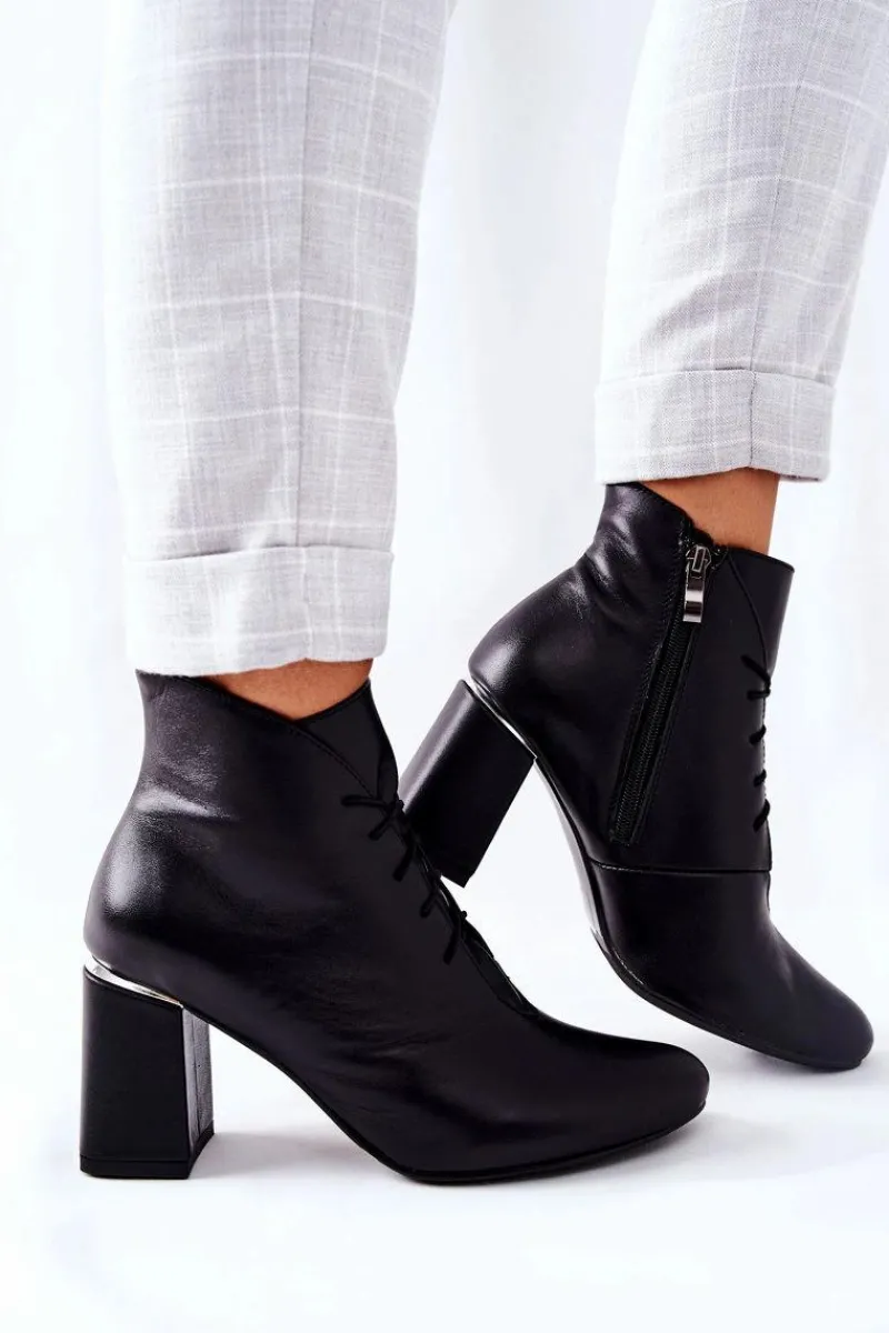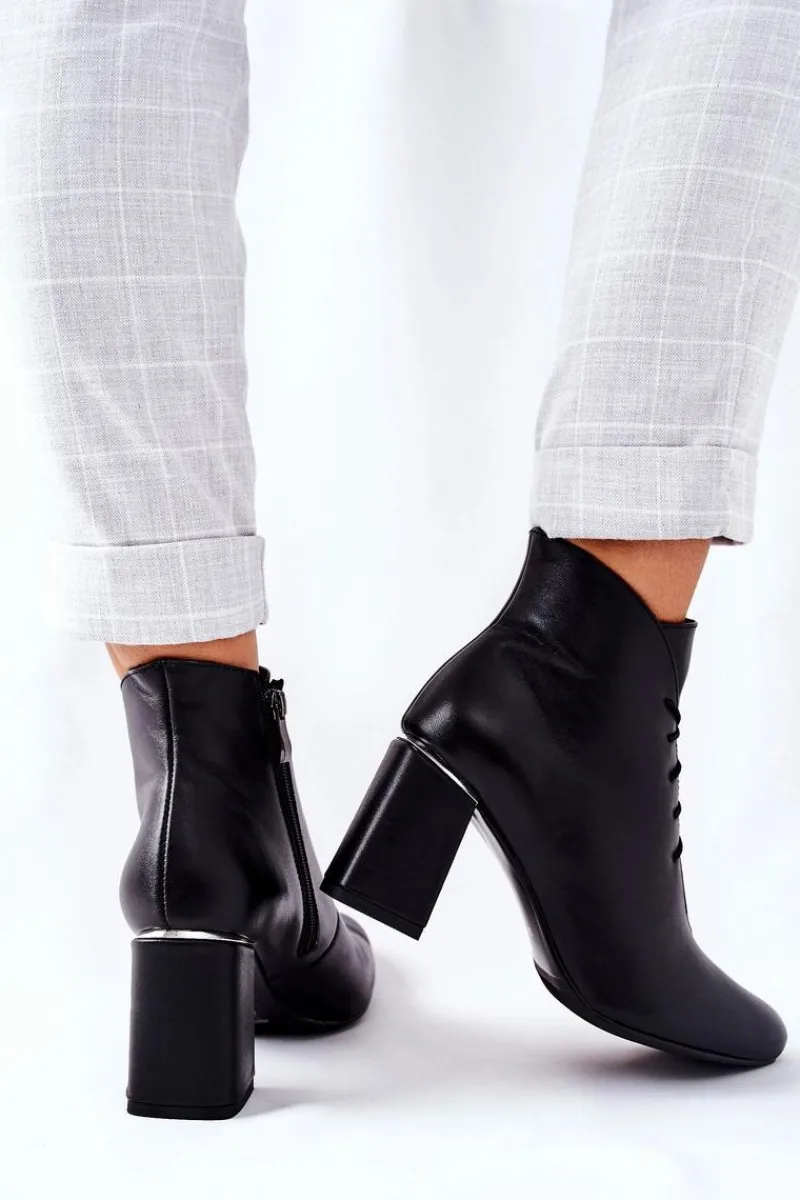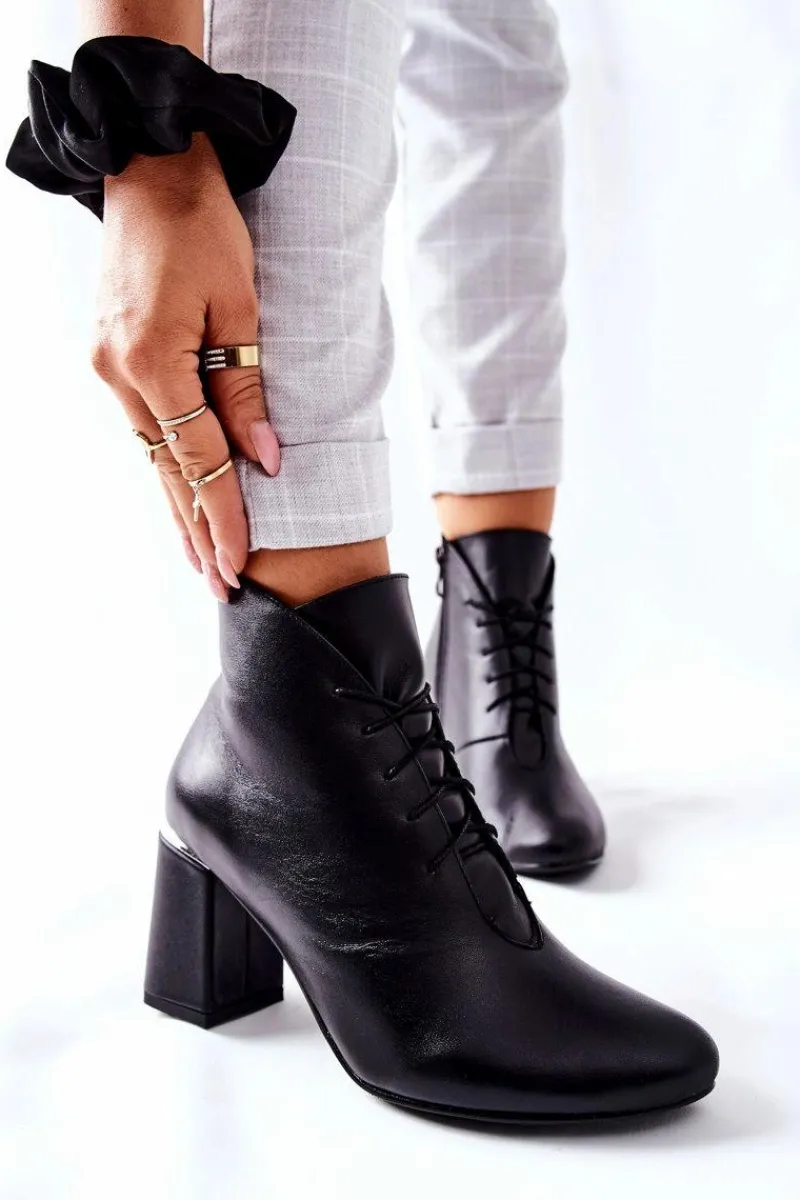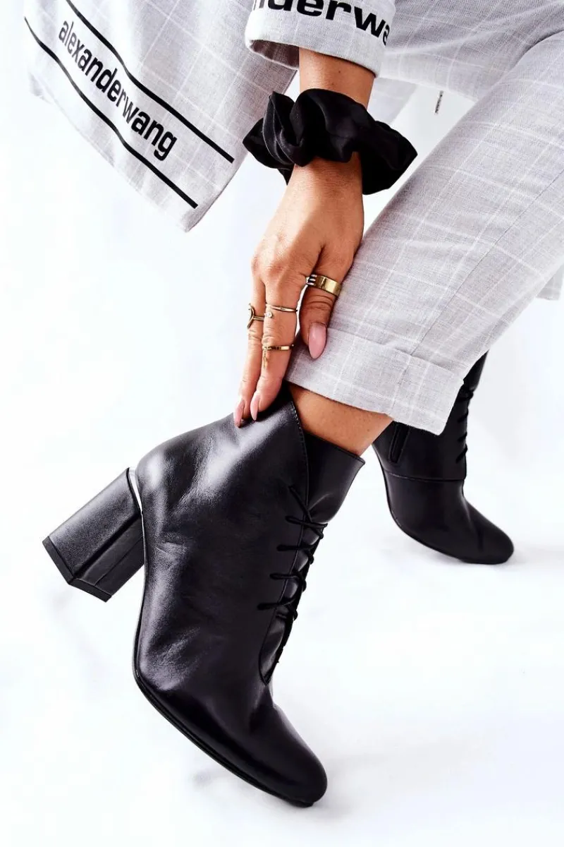 Klasyczne botki, w całości wykonane z najwyższej jakości skóry naturalnej. Wnętrze ocieplone, ciepłym i miłym w dotyku kocem obuwniczym, gwarantującym ciepło w każdy nawet najchłodniejszy dzień. Zapinane na suwak oraz sznurowane. Fason na delikatnym słupku oraz zaokrąglonym nosku. Przy wyborze rozmiaru prosimy sugerować się tabelą rozmiarów.