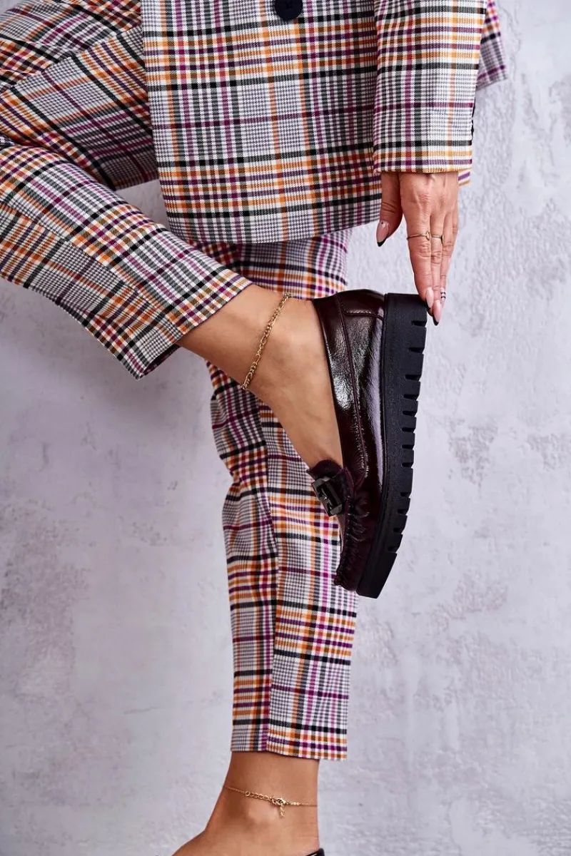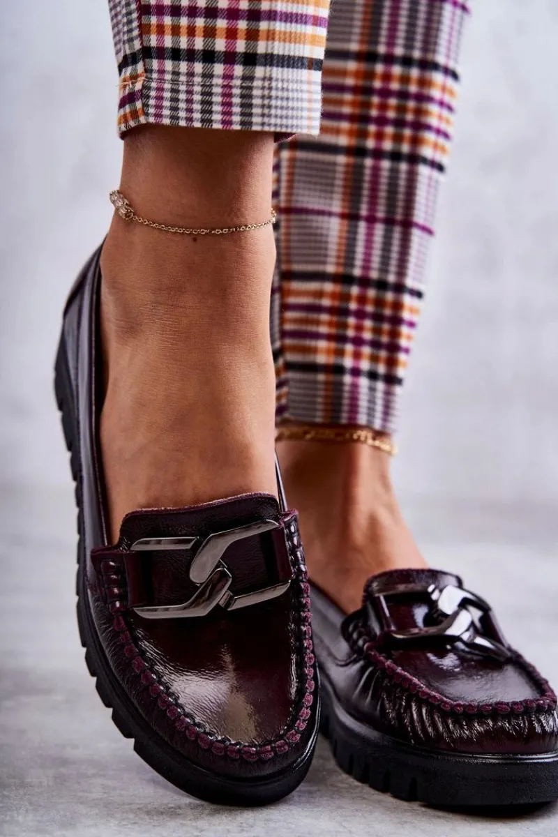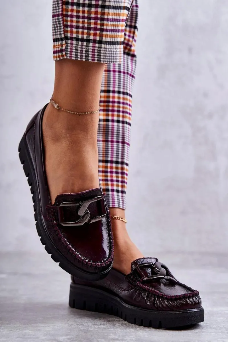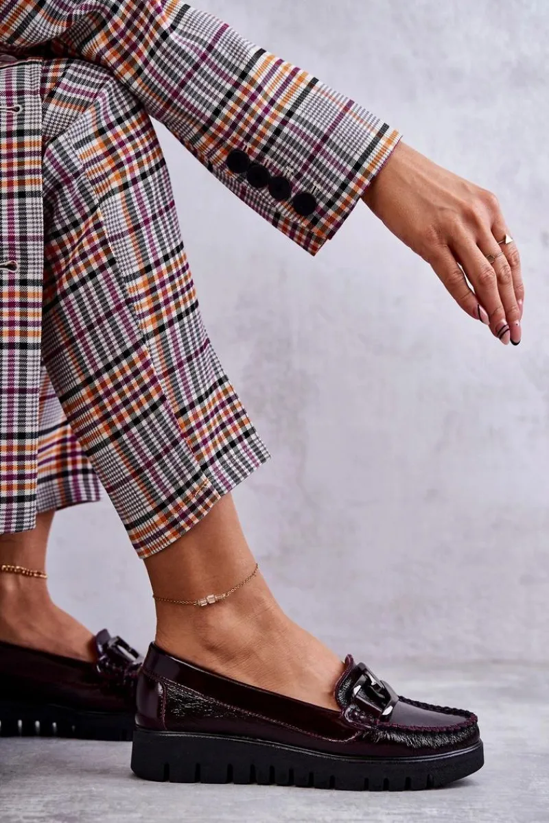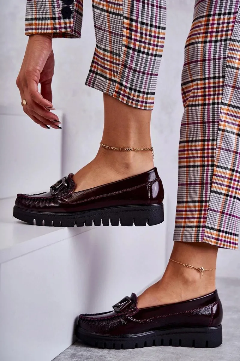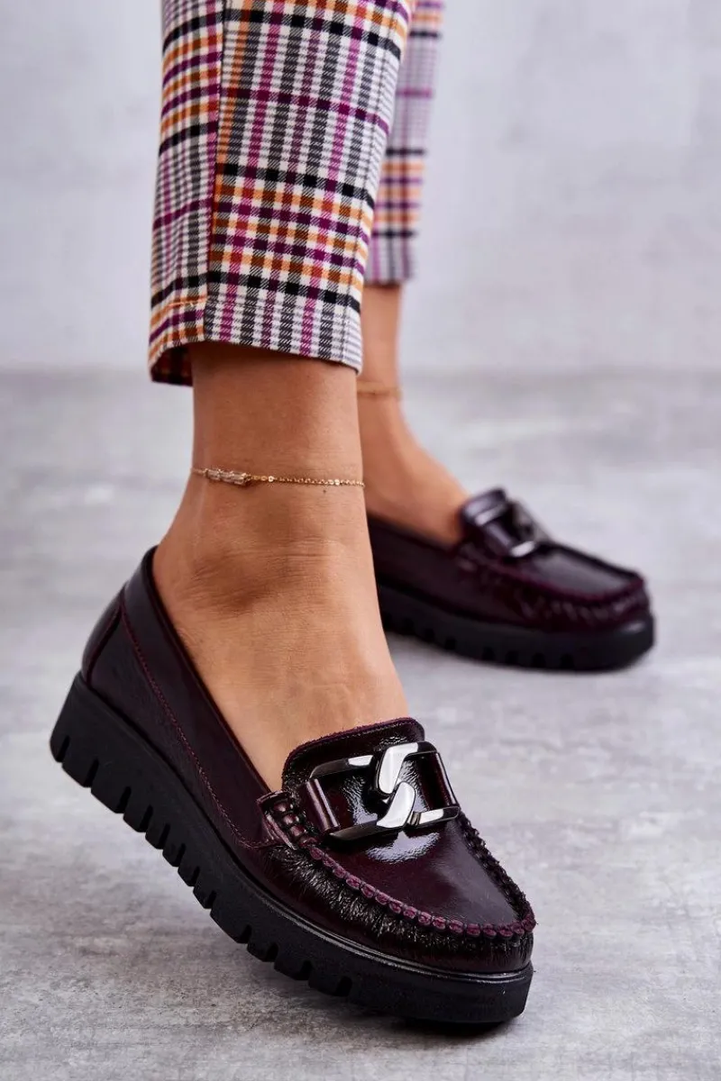Discount Boto Damskie Skórzane Mokasyny Na Platformie Bordowe Venesia