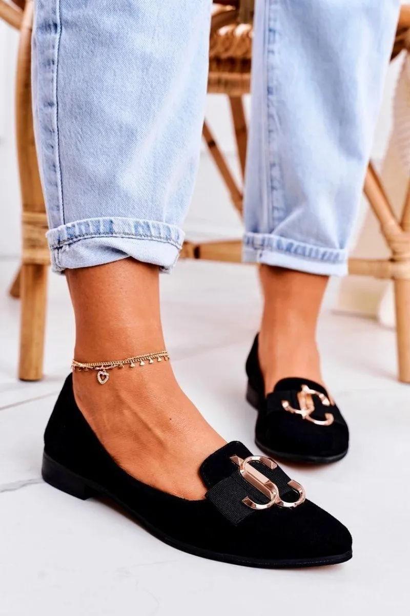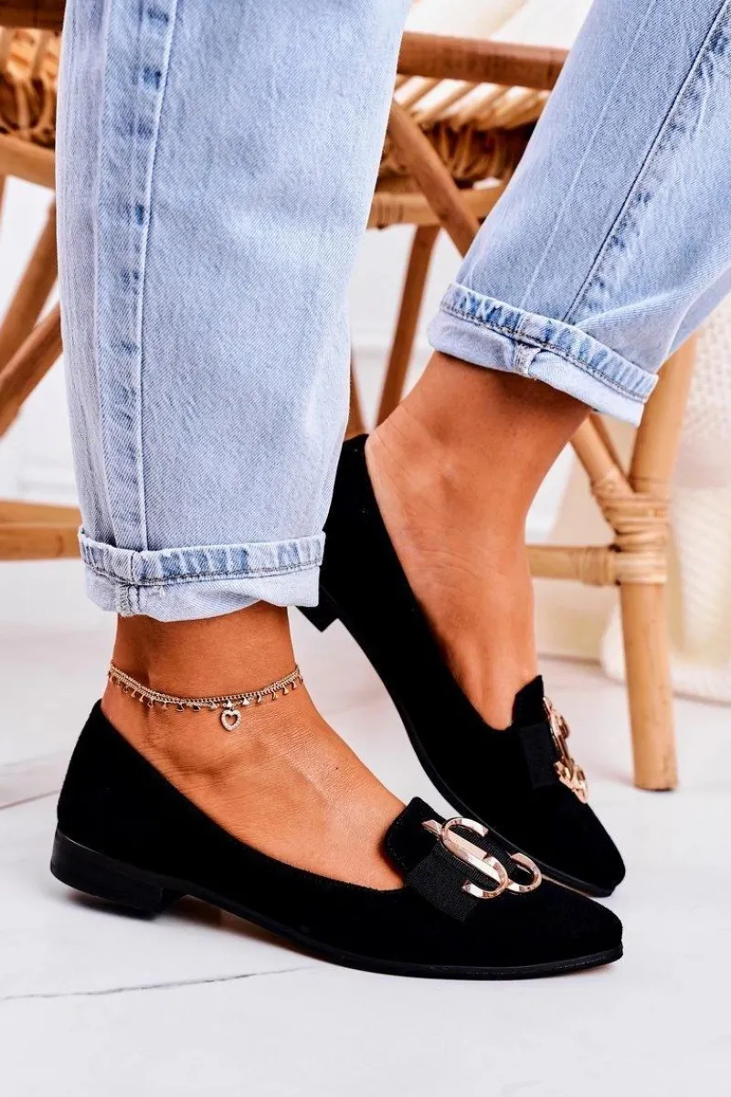 Discount Boto Damskie Zamszowe Mokasyny Baleriny Czarne Mary-Jane