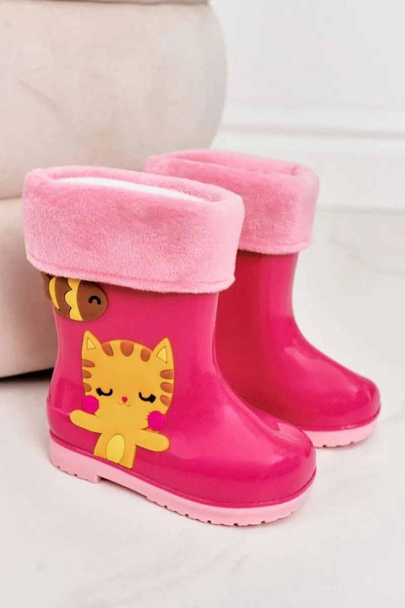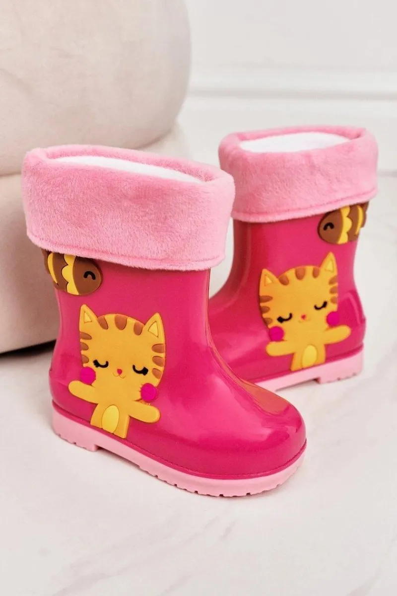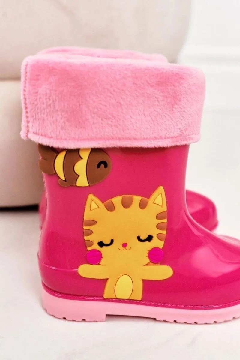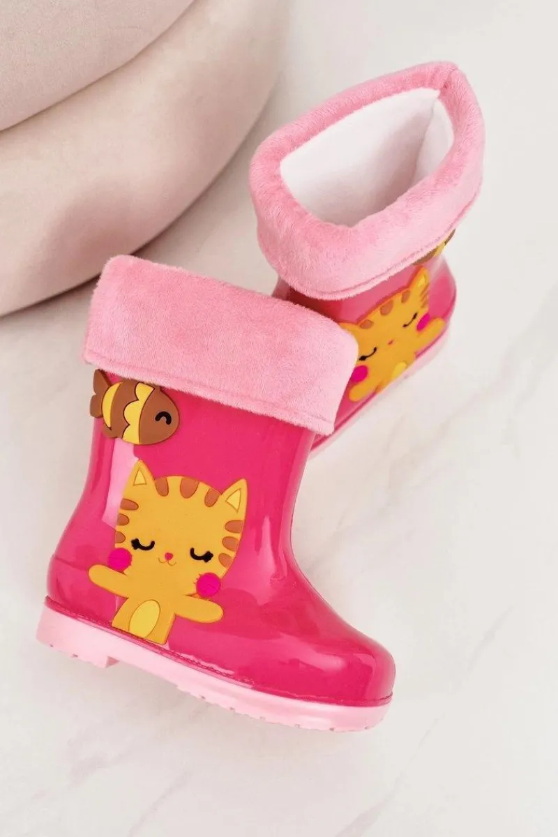 Discount Boto Dziecięce Ocieplane Kalosze Z Kotkiem Różowe