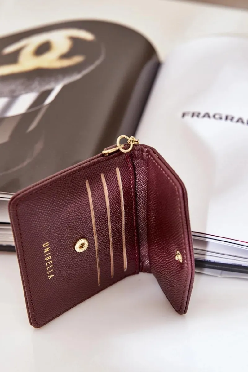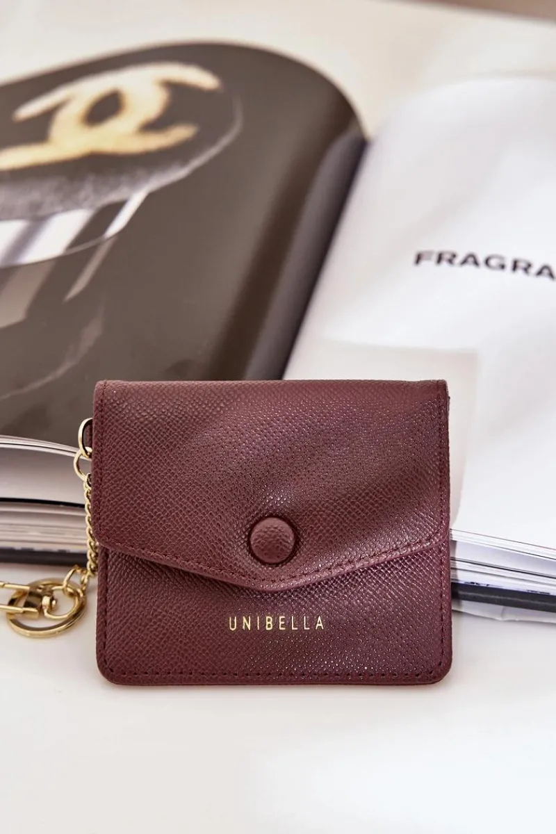 Praktyczne i eleganckie etui na karty wykonane z eko skóry. Zapinane na zatrzask, zapewnia wygodę i bezpieczeństwo przechowywania. Dodatkowym atutem jest ozdobny złoty brelok. Stylowy i funkcjonalny dodatek, idealny do codziennego użytku.