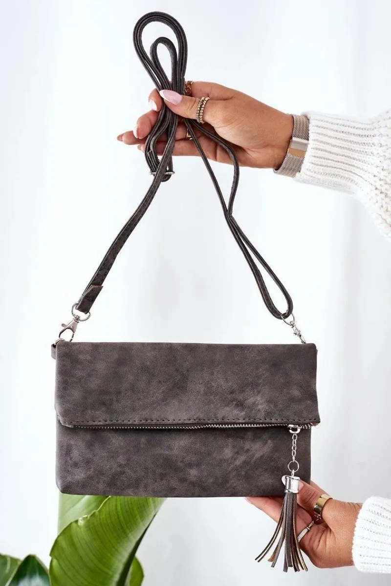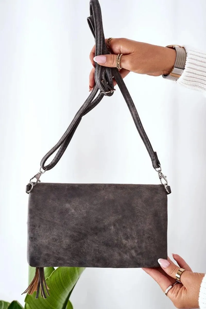 Discount Boto Kopertówka Z Odpinanym Paskiem I Frędzlami Szara