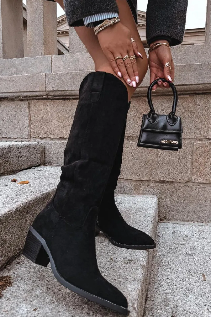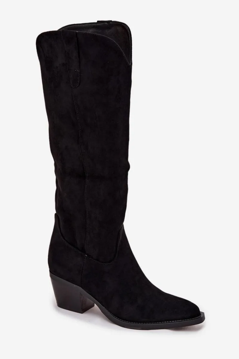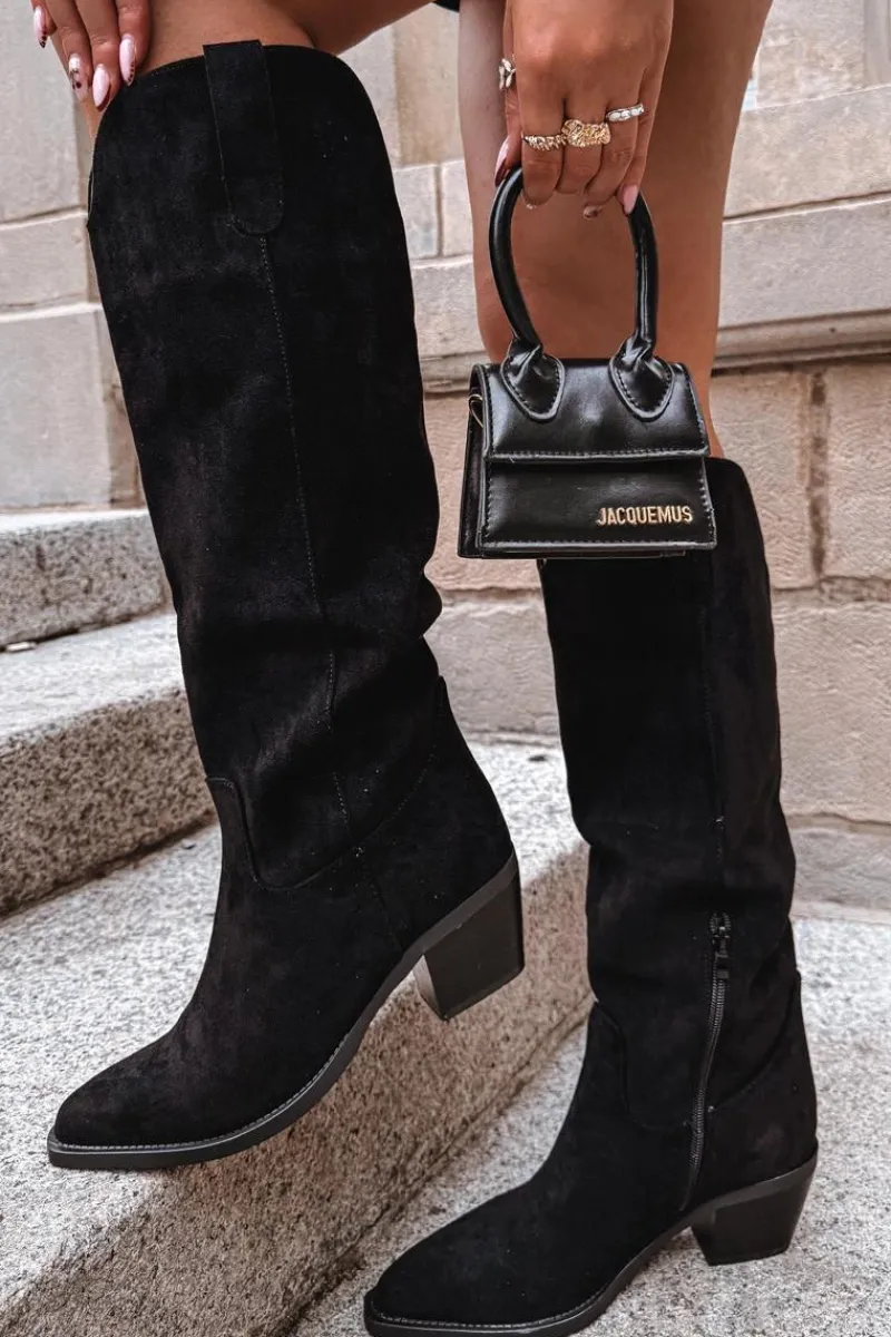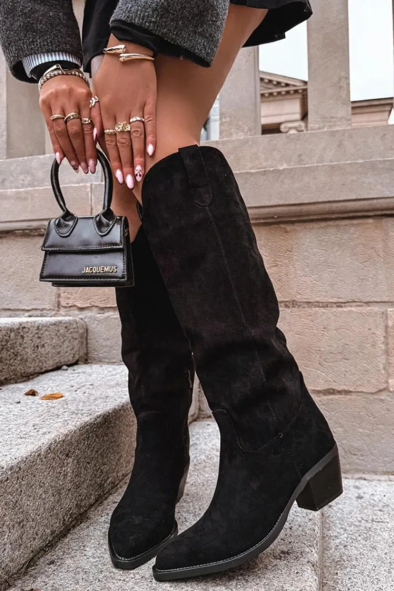 Kozaki damskie w stylu kowbojek, wykonane z eko zamszu. Osadzone na charakterystycznym, ściętym obcasie, dodają sylwetce lekkości i podkreślają kobiecy styl. Migdałowe noski nadają całości subtelności, a wsuwany fason z dodatkowym zapięciem na zamek zapewnia wygodę zakładania i idealne dopasowanie do nogi. To model, który doskonale wpisuje się w aktualne trendy – świetnie prezentuje się zarówno z sukienkami i spódnicami, jak i z dopasowanymi spodniami typu skinny. Stylowe i uniwersalne, staną się efektownym uzupełnieniem jesienno-zimowych stylizacji. Przy wyborze rozmiaru prosimy sugerować się poniższą tabelą rozmiarów.