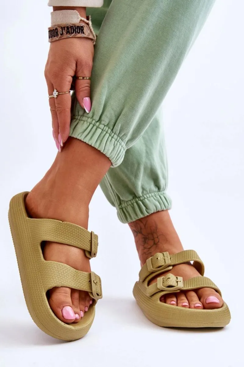 Niezwykle lekkie klapki damski osadzone na platformie zostały wykonane z piankowego tworzywa. Posiadają regulowane paski zapinane na sprzączki. Model ten jest klasycznie wsuwany. Klapki świetnie sprawdzą się także jako obuwie na basen. Koniecznie sprawdź także pozostałe modele damskich klapek! Przy wyborze rozmiaru prosimy sugerować się tabelą rozmiarów.