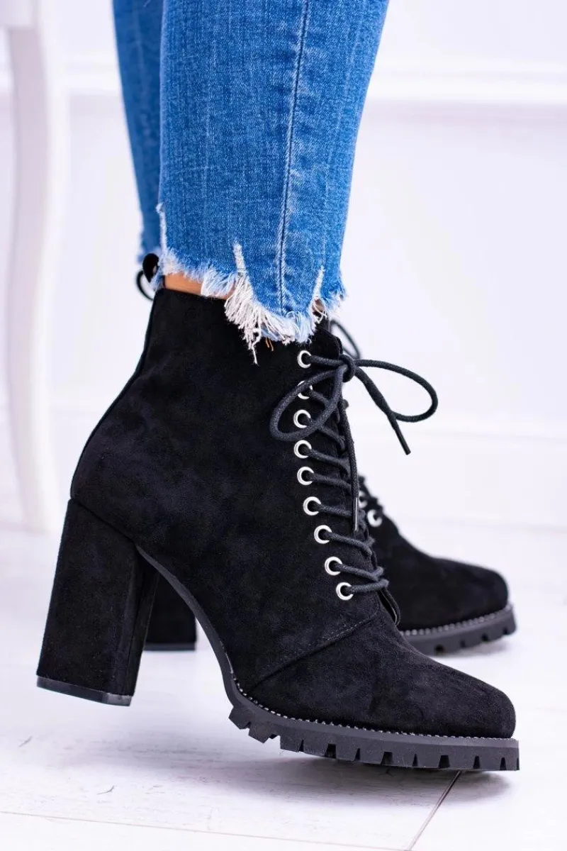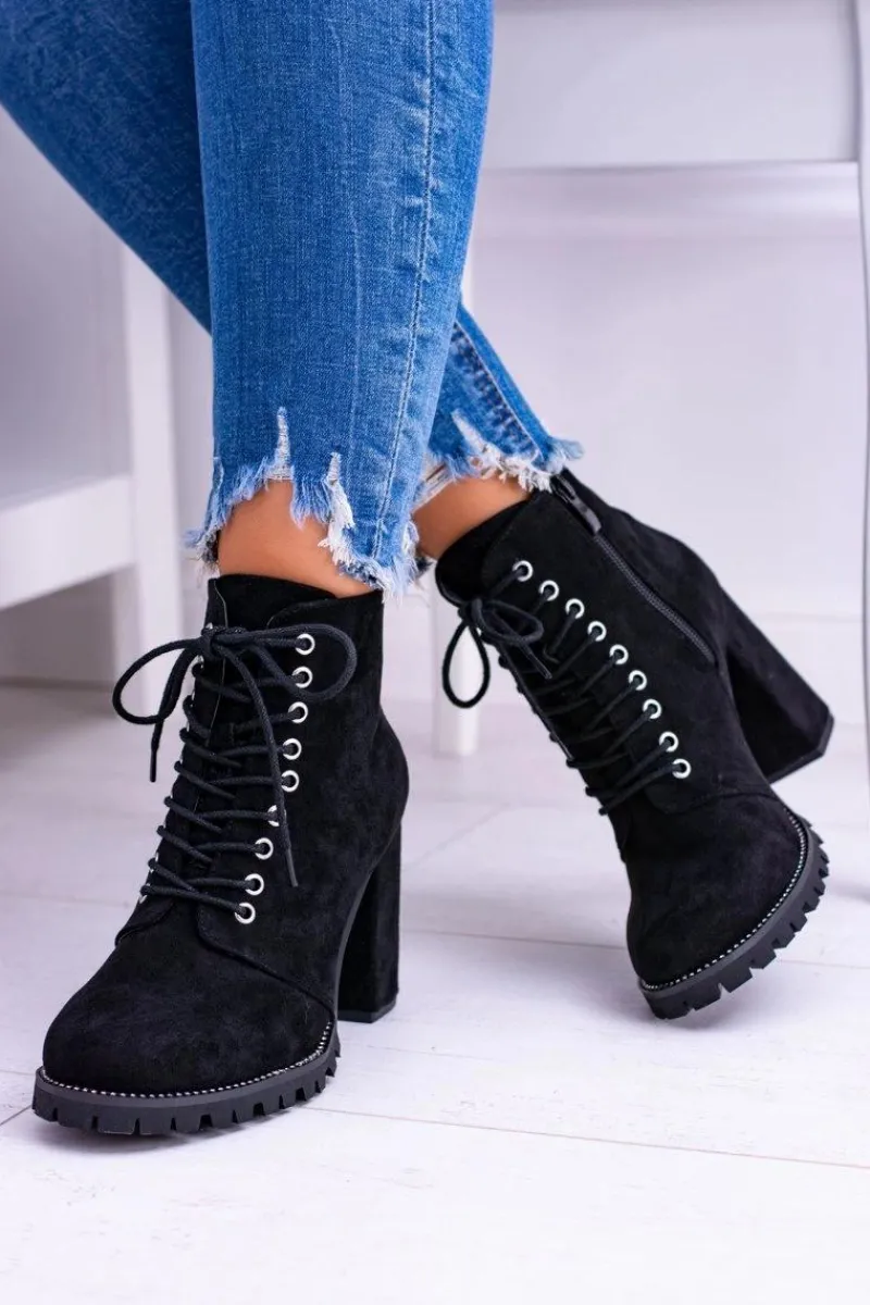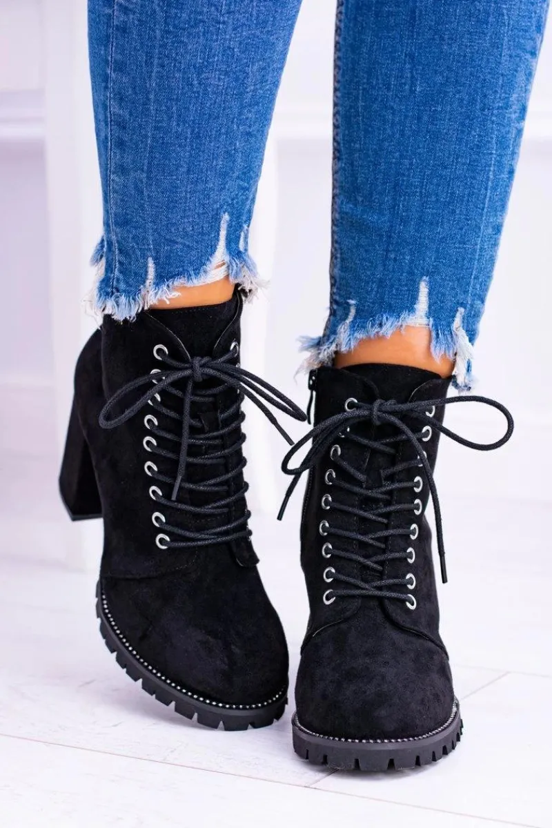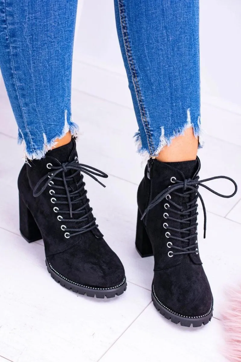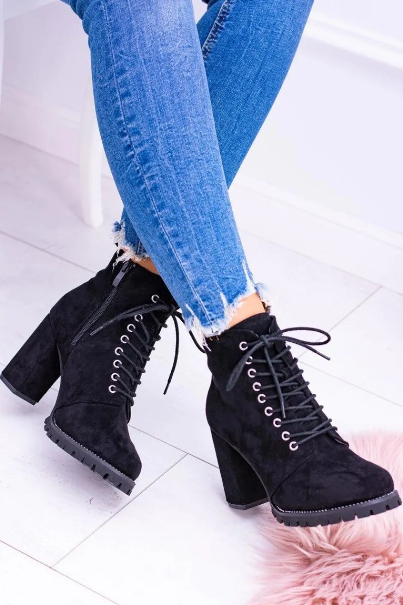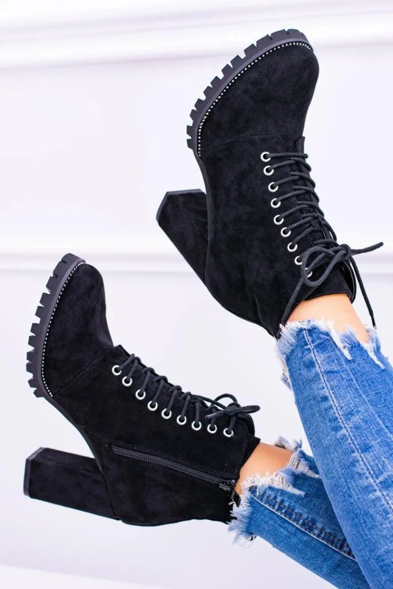 Discount Boto Lu Boo Czarne Zamszowe Botki na Słupku Cyrkonie Halsey