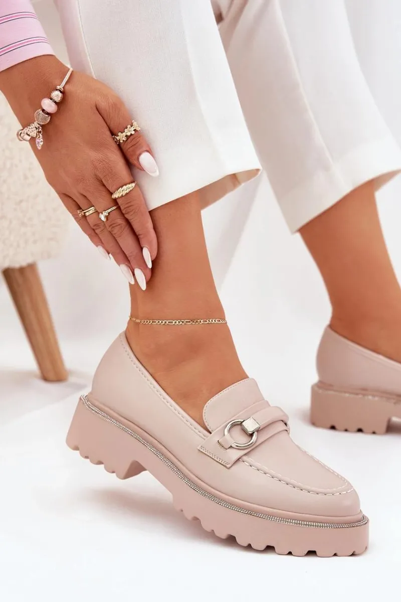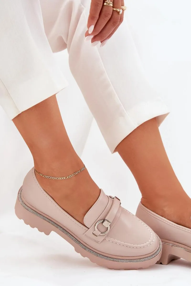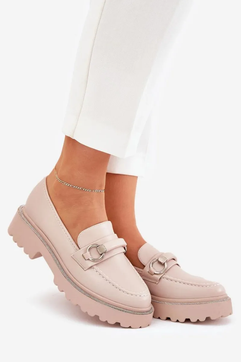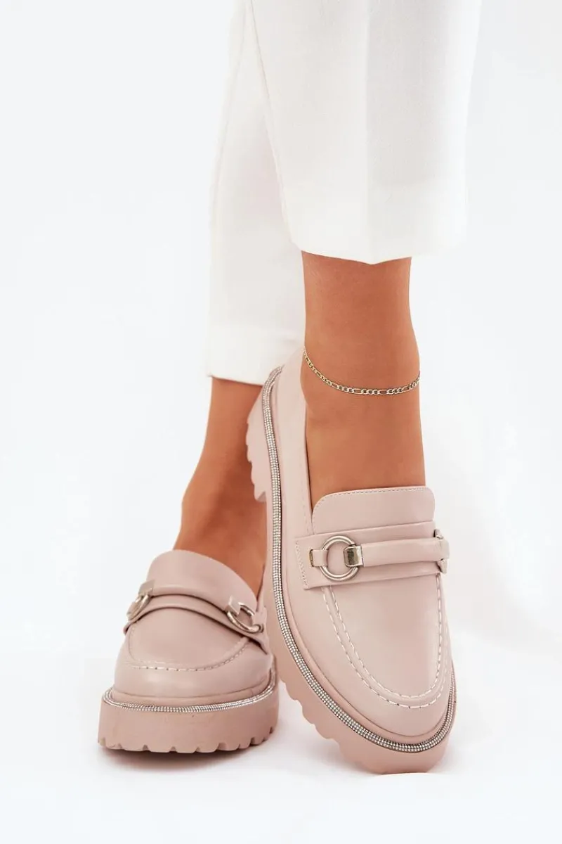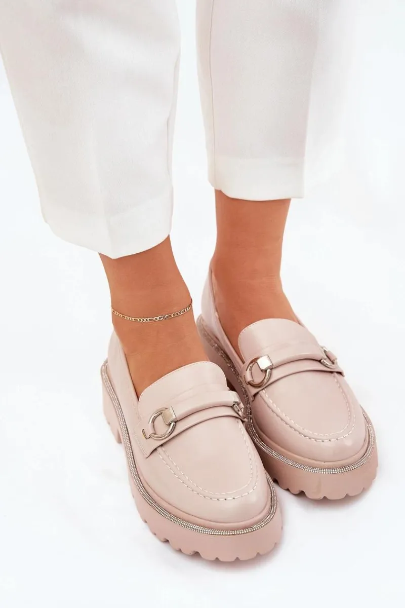 Stylowe mokasyny wykonane z eko skóry. Z przodu paseczek z ozdobą dodaje wyjątkowego charakteru, a zaokrąglone noski zapewniają komfort przez cały dzień. Przy podeszwie znajdują się zdobienia cyrkoniami, które nadają blasku. Idealne na co dzień, te mokasyny doskonale komponują się z różnymi stylizacjami. Przy wyborze rozmiaru prosimy sugerować się tabelą rozmiarów.