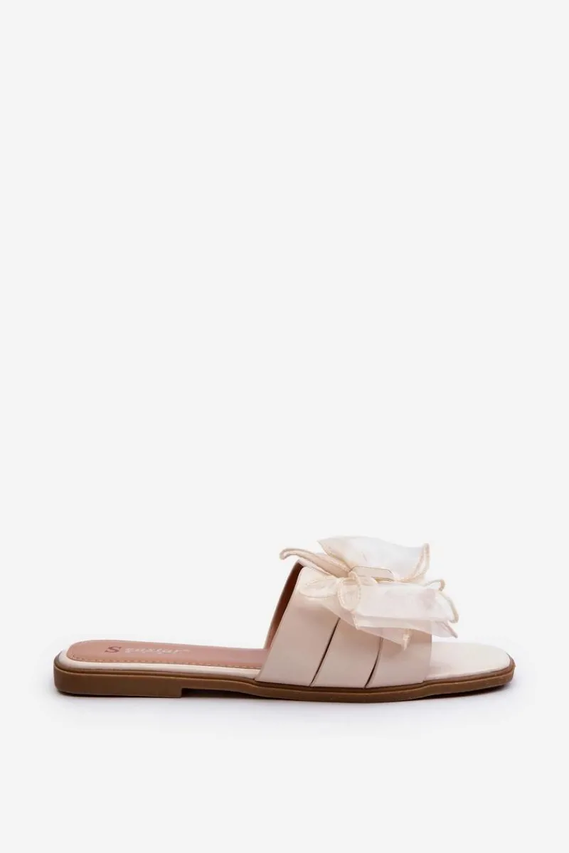 Klapki damskie z kokardą to doskonały wybór dla kobiet, które poszukują elegancji i wygody w jednym. Płaski obcas sprawia, że są nie tylko stylowe, ale także komfortowe podczas noszenia. Dodatkowo kokarda nadaje im subtelnego uroku. Idealnego zarówno na letnie spacery, jak i na bardziej formalne okazje. Przy wyborze rozmiaru prosimy sugerować się tabelą rozmiarów.