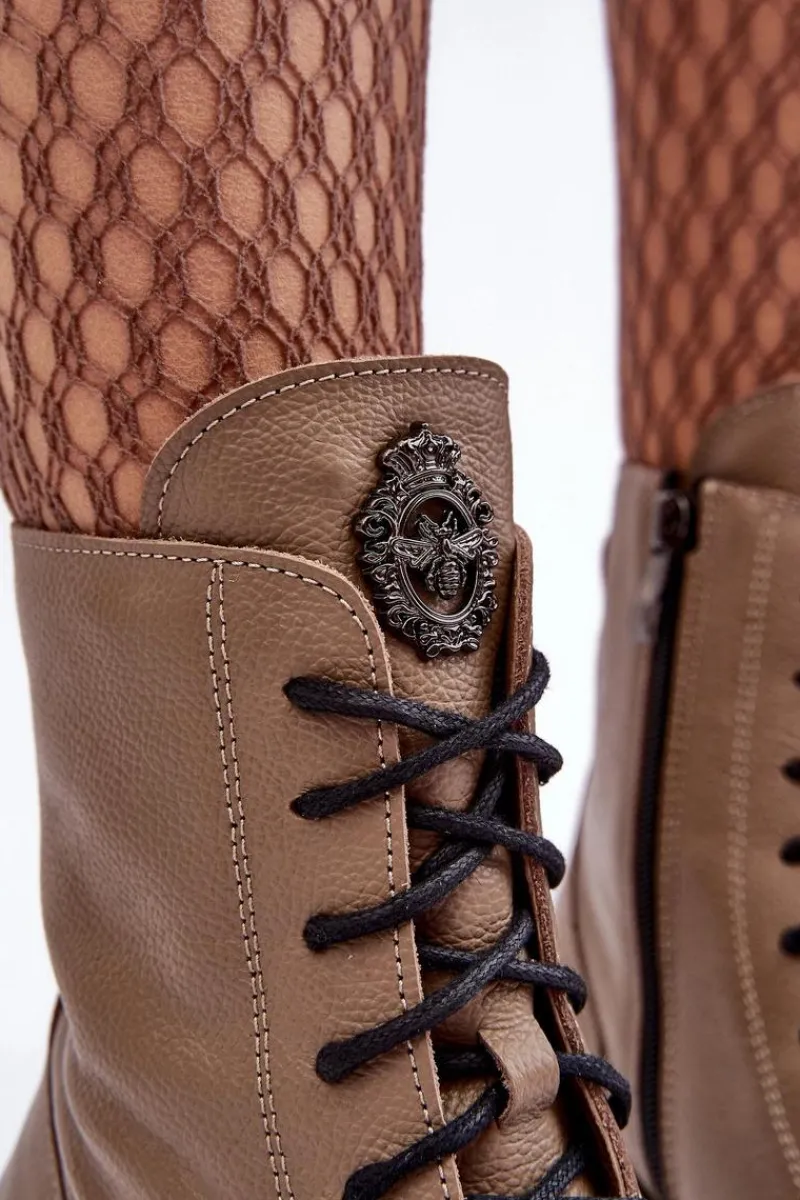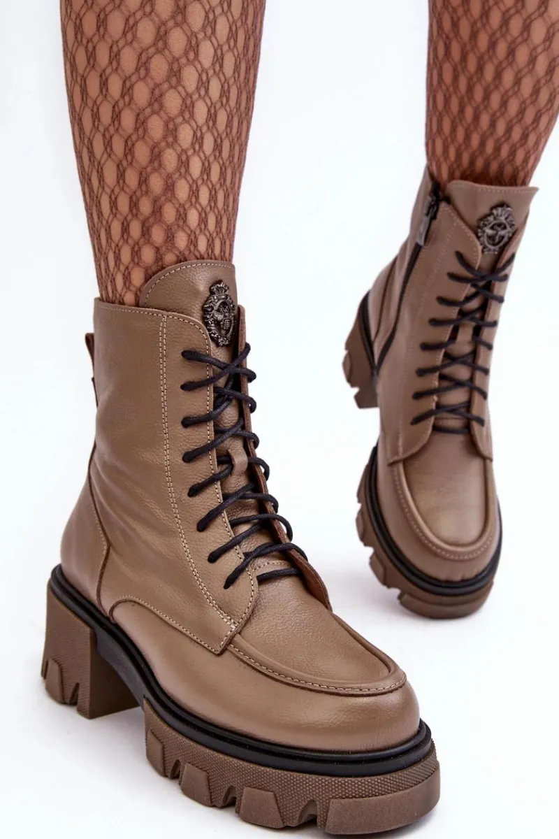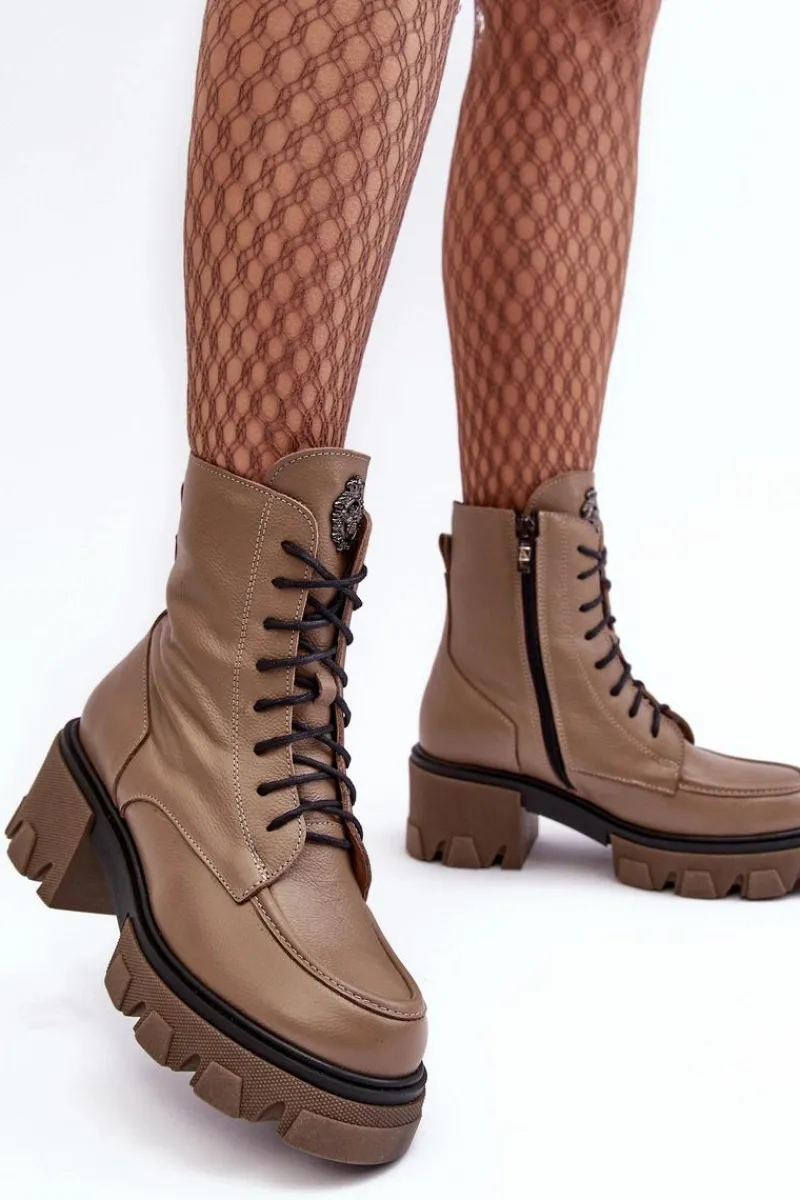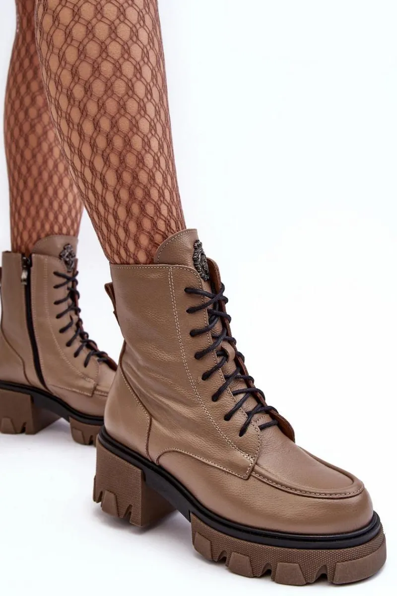 Modne, damskie botki zostały wykonane z wysokiej jakości naturalnych skór. Posiadają klasyczne sznurowanie oraz suwak z boku cholewki. Zapiętek jest usztywniany. Botki osadzono na platformie i masywnym, płaskim obcasie. Podeszwa jest antypoślizgowa. Botki wewnątrz zostały ocieplone kocem obuwniczym. Wkładka jest miękka i wygodna podczas użytkowania. Przy wyborze rozmiaru prosimy sugerować się tabelą rozmiarów.