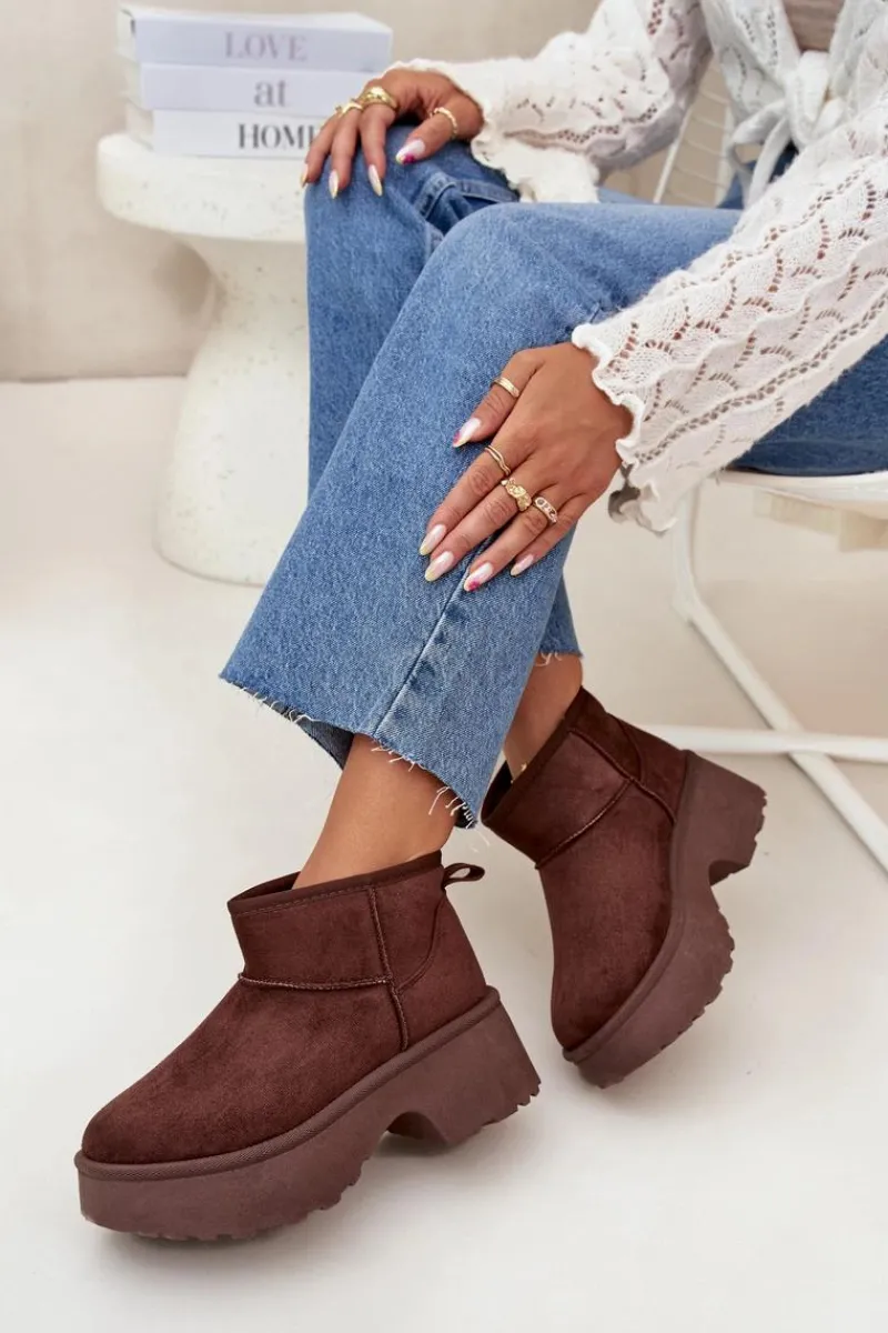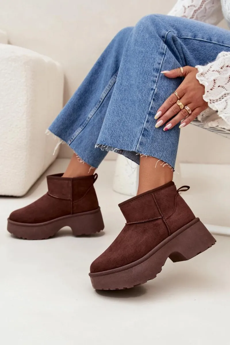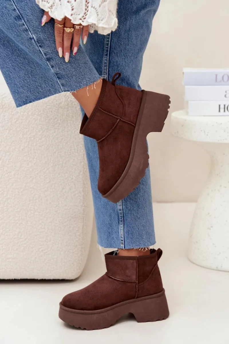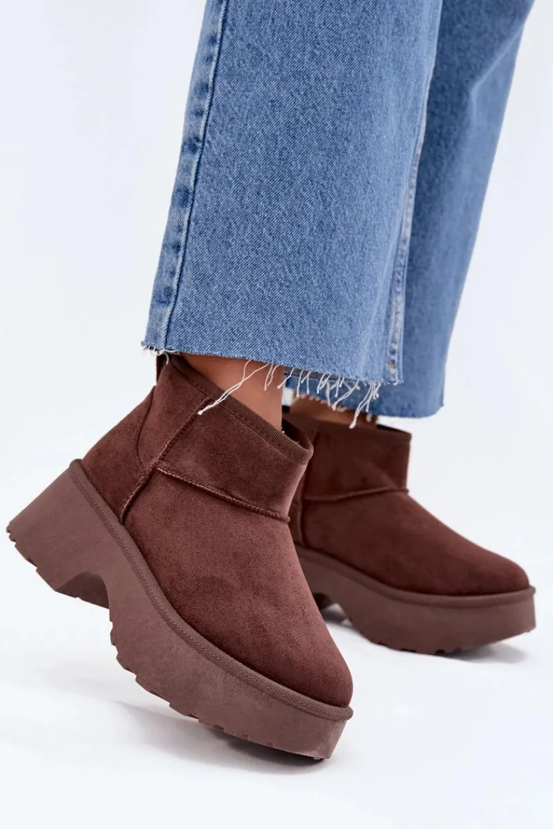 Śniegowce damskie z eko zamszu to idealny wybór na zimowe dni. Osadzone na platformie i obcasie, zapewniają wygodę i stabilność, jednocześnie dodając kilku centymetrów wysokości. Wsuwany model gwarantuje łatwość zakładania, a ocieplenie futerkiem zapewnia ciepło nawet w najchłodniejsze dni. Doskonałe na codzienne wyjścia. Przy wyborze rozmiaru prosimy sugerować się tabelą rozmiarów.