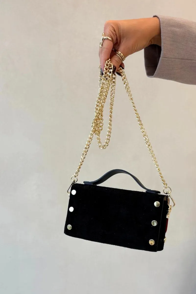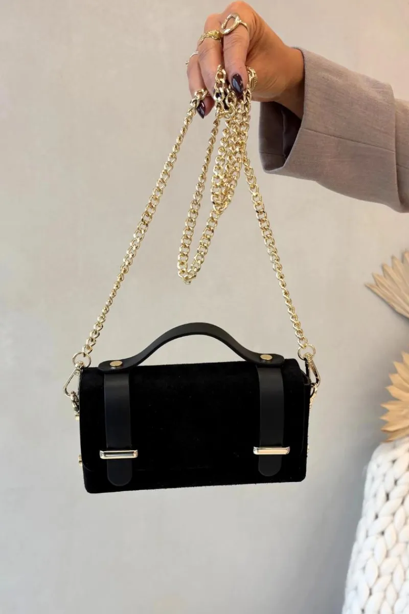 Mała torebka damska wykonana z naturalnego zamszu to elegancki dodatek, który doskonale uzupełni zarówno codzienne, jak i wieczorowe stylizacje. Model zapinany na klips magnetyczny jest wygodny w użytkowaniu, a odpinany łańcuszek pozwala nosić torebkę na ramieniu lub jako kopertówkę. Dzięki kompaktowemu rozmiarowi torebka prezentuje się wyjątkowo stylowo i ponadczasowo. Idealna na spotkania, wyjścia do miasta czy eleganckie okazje.
