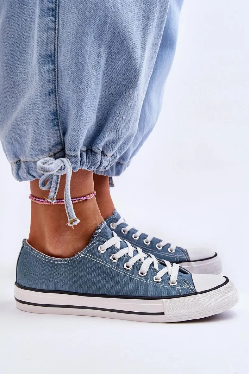 Klasyczne, sznurowane trampki damskie zostały wykonane z materiału tekstylnego. Posiadają gumową podeszwę, która jest dodatkowo antypoślizgowa. Ponadczasowy model, który powinnaś mieć w swojej szafie! Z pewnością założysz je do wielu stylizacji! Nosek został wzmocniony gumowym tworzywem. Wygodna, materiałowa wkładka zapewni komfort podczas użytkowania. Przy wyborze rozmiaru prosimy sugerować się tabelą rozmiarów.
