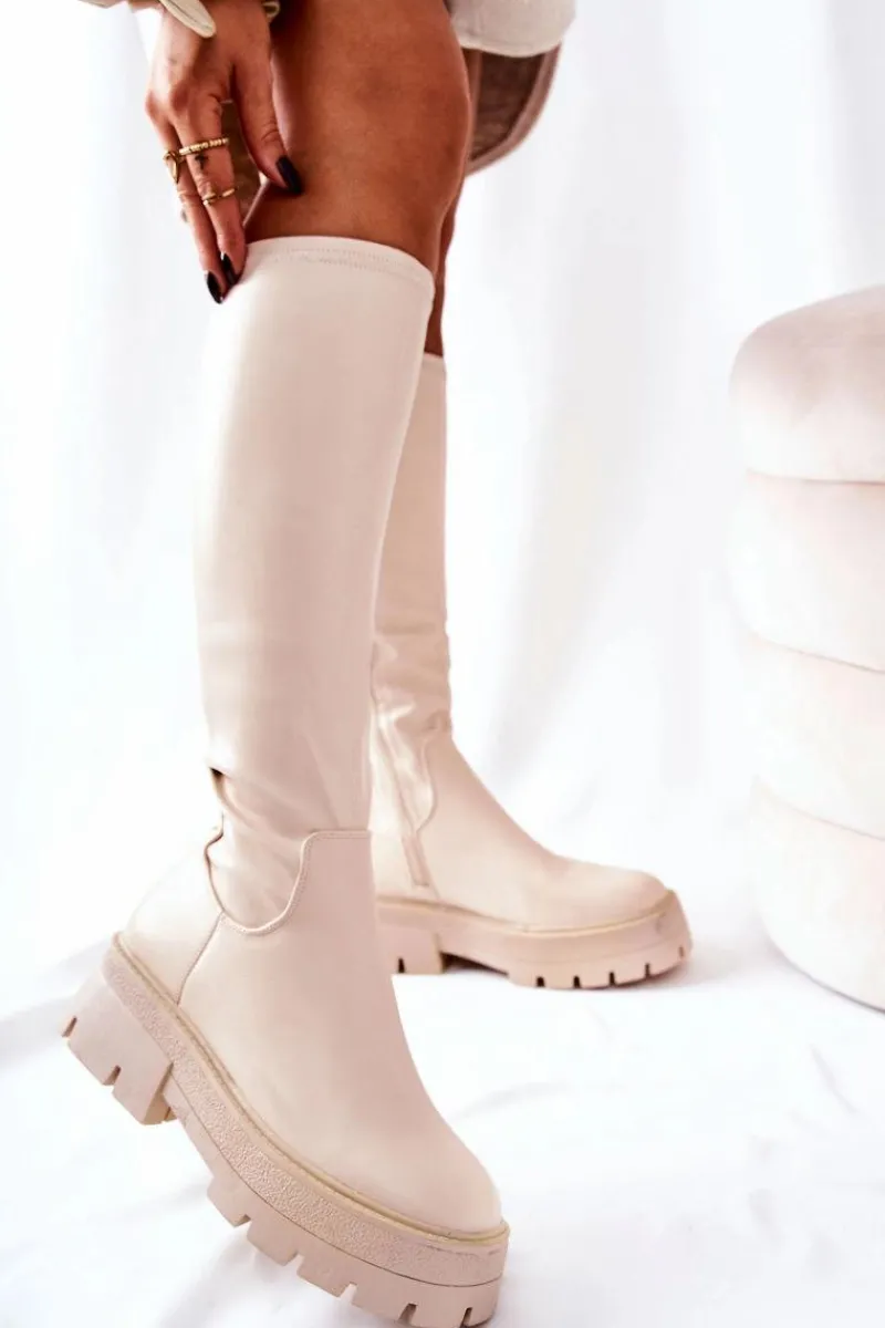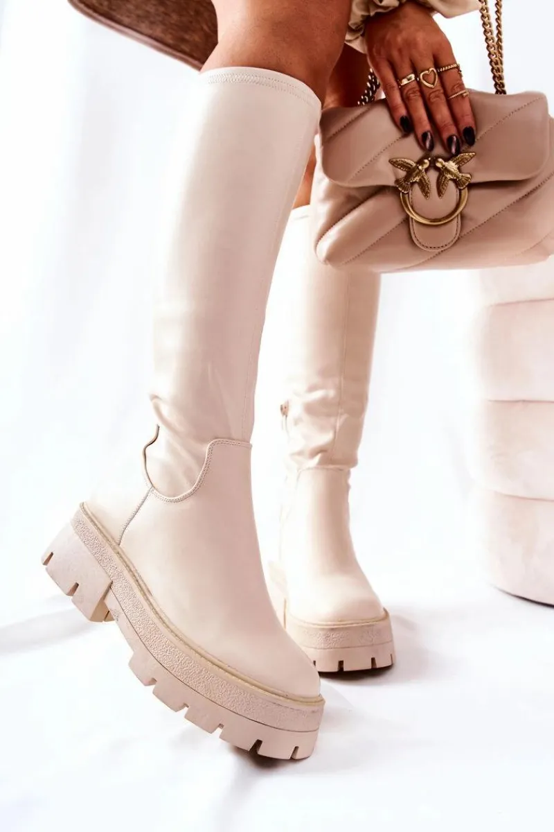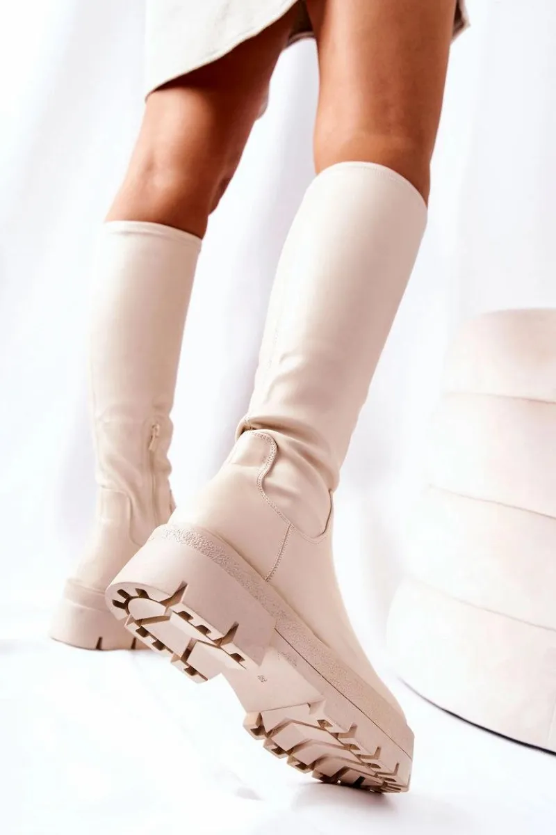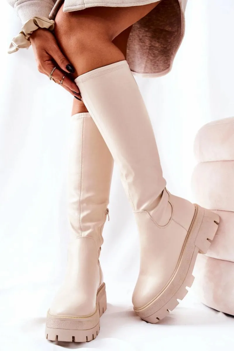 Kozaki do kolana wykonane ze skóry ekologicznej. Suwak zapinany do połowy cholewki. Wnętrze ocieplane kocem obuwniczym. Świetnie prezentują się do sukienek i spódniczek. Kozaki z traperową podeszwą są komfortowe w noszeniu. Nie przegap takiej okazji i zamów już dziś!