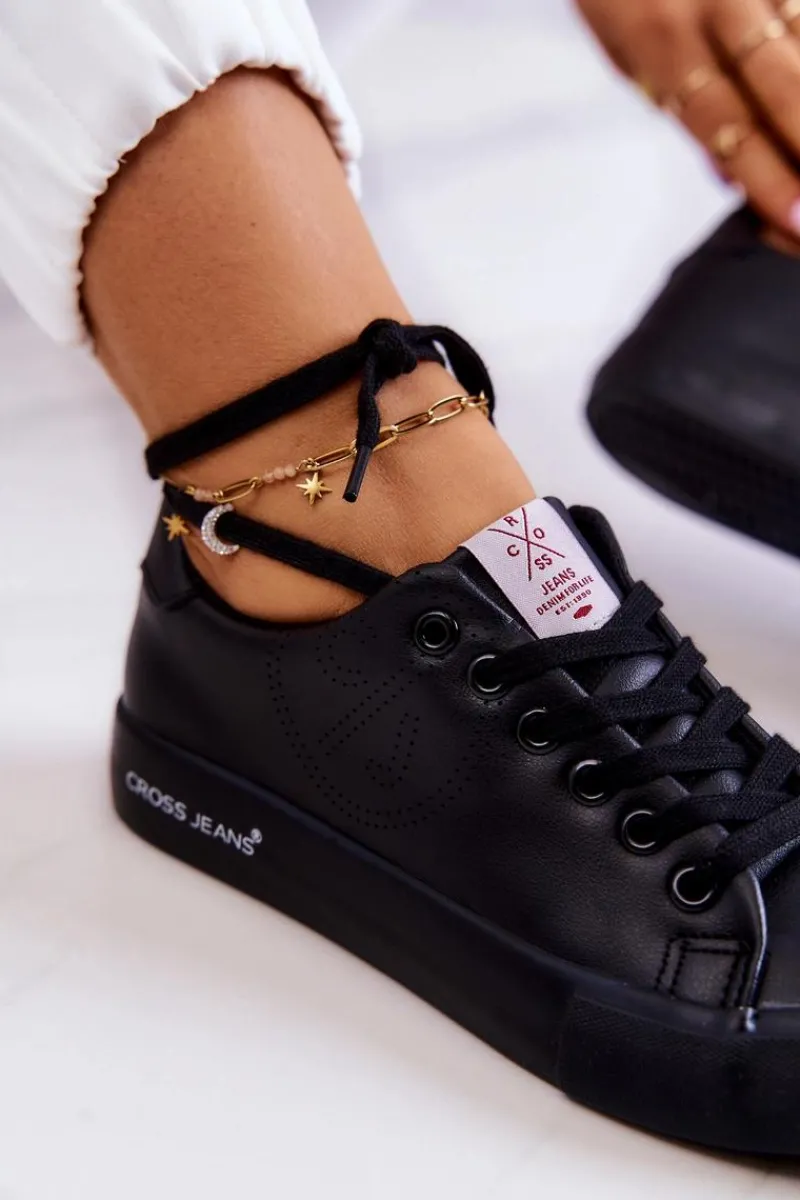 Ponadczasowe sznurowane tenisówki wykonane z eko-skóry. Podeszwa antypoślizgowa, zdobiona logiem CROSS JEANS. Na boku są delikatnie perforowane. Miękka, wygodna wkładka zapewnia komfort przez cały dzień. Tenisówki doskonale sprawdzą się zarówno podczas wyjścia do pracy, jak i w trakcie wycieczki za miasto. Przy wyborze rozmiaru prosimy kierować się tabelą rozmiarów.