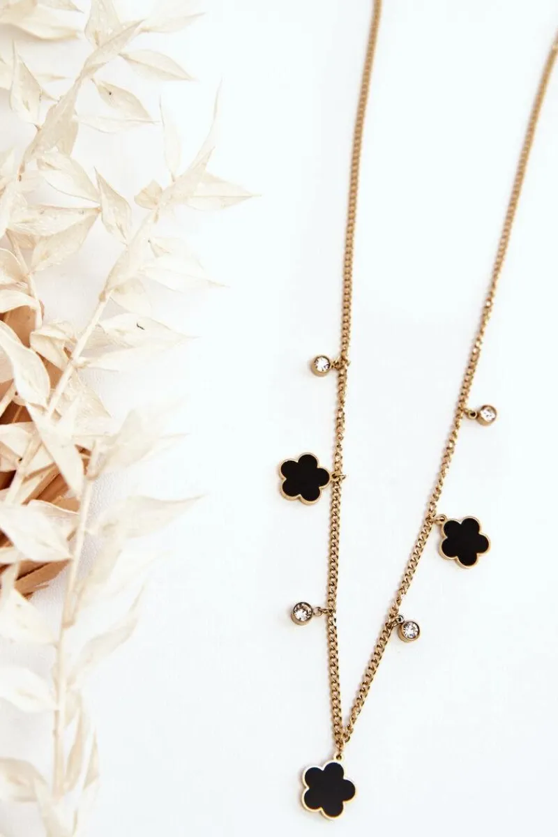 Discount Damski Łańcuszek Pancerka Z Czarnymi Kwiatami Złoty Naszyjniki