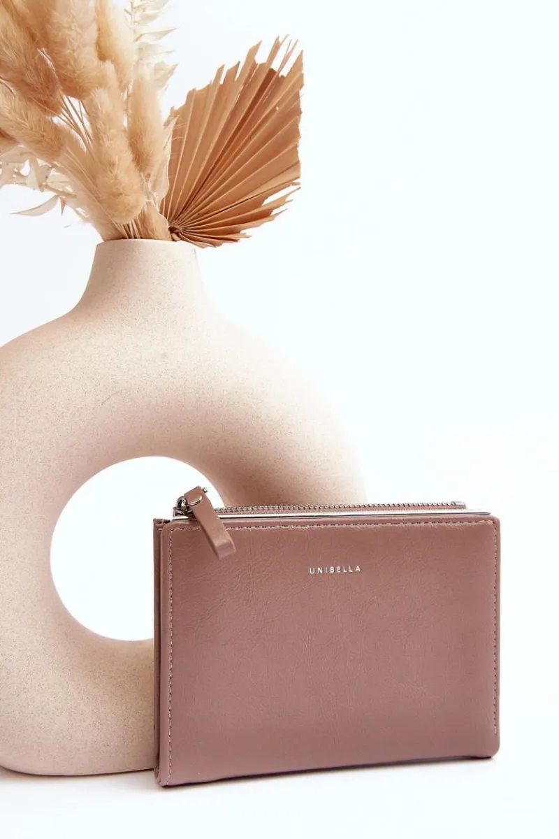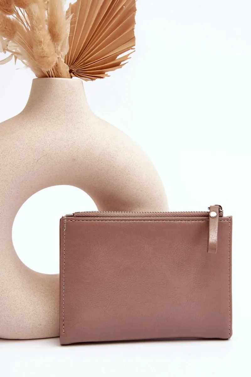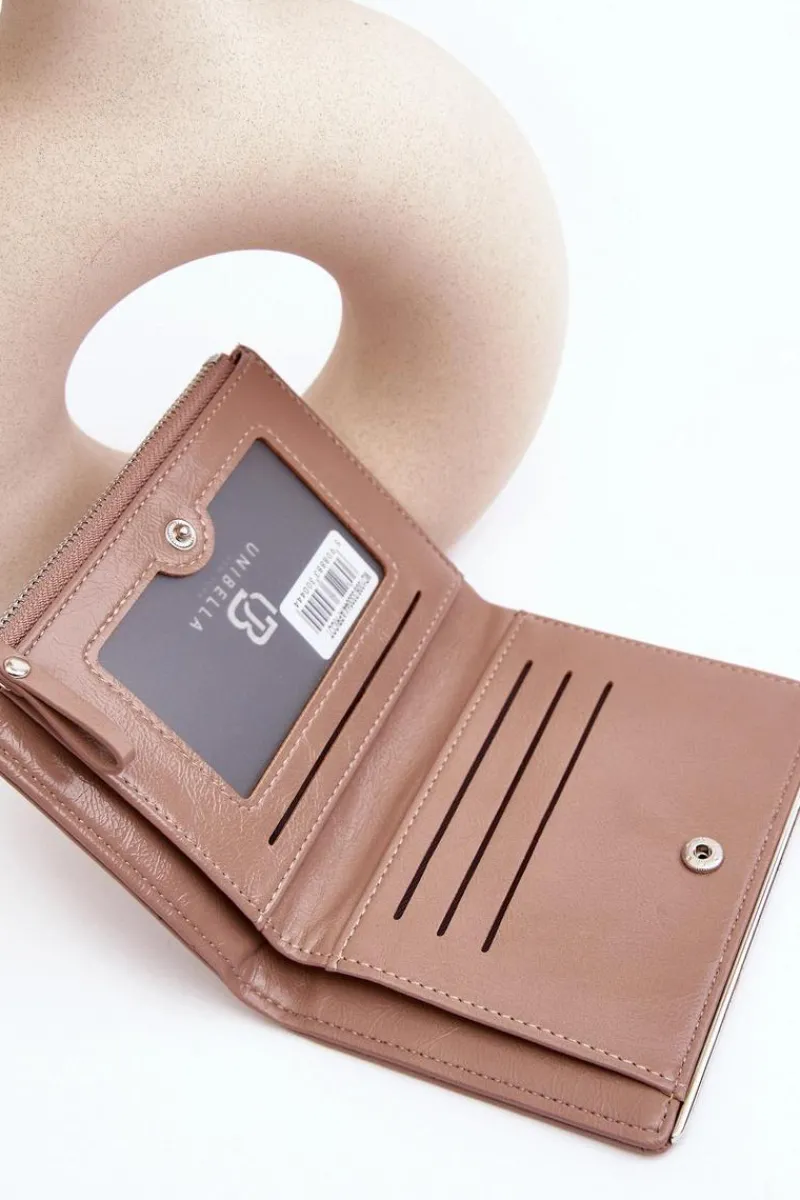 Portfel damski wykonany z połyskującej eko skóry. Zapinany na zatrzask oraz suwak. W środku miejsce na banknoty, karty, fotografię. Model ten posiada osobną kieszeń na monety. Doskonale sprawdzi się jako prezent!