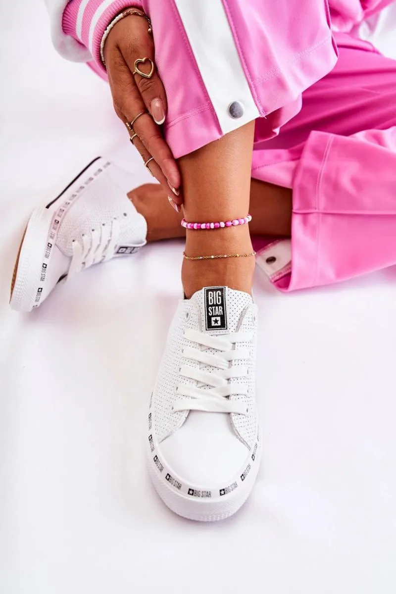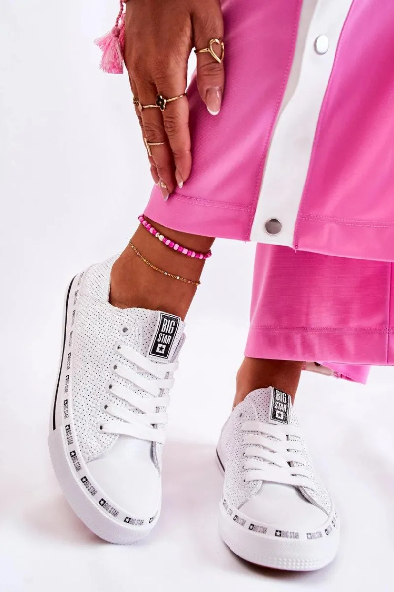 Damskie trampki polskiej marki Big Star. Obuwie wykonane jest z wysokiej jakości ażurowej eko skóry. O Twój komfort zadba miękka, materiałowa wkładka oraz logowana, antypoślizgowa podeszwa. Koniecznie sprawdź całą naszą kolekcję butów BIG STAR. Przy wyborze rozmiaru prosimy kierować się tabelą rozmiarów.