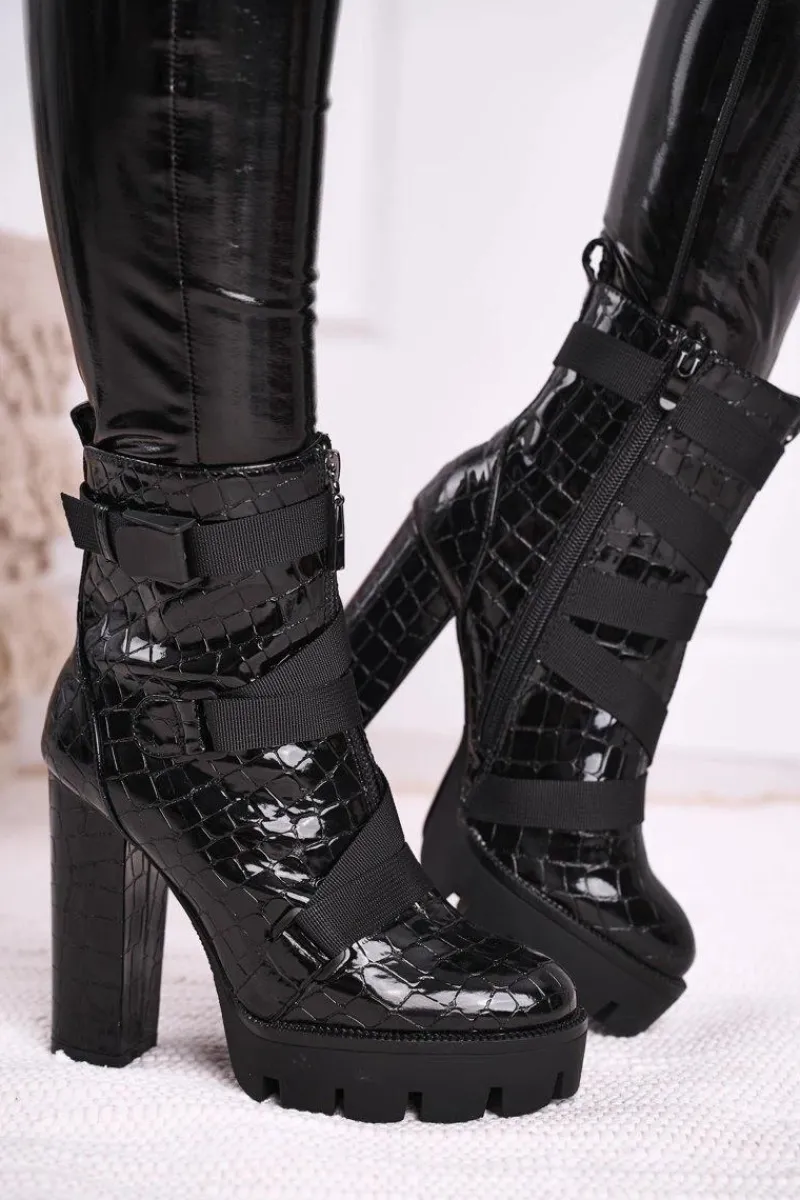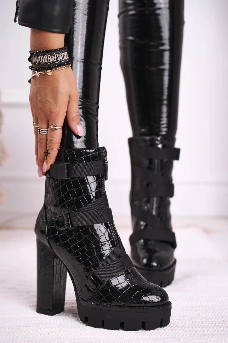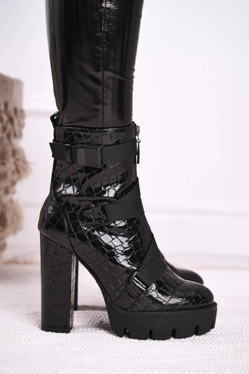 Discount Damskie Botki na Słupku Wysokie Czarne Hortego Damskie Botki Na Słupku|Czarne Botki