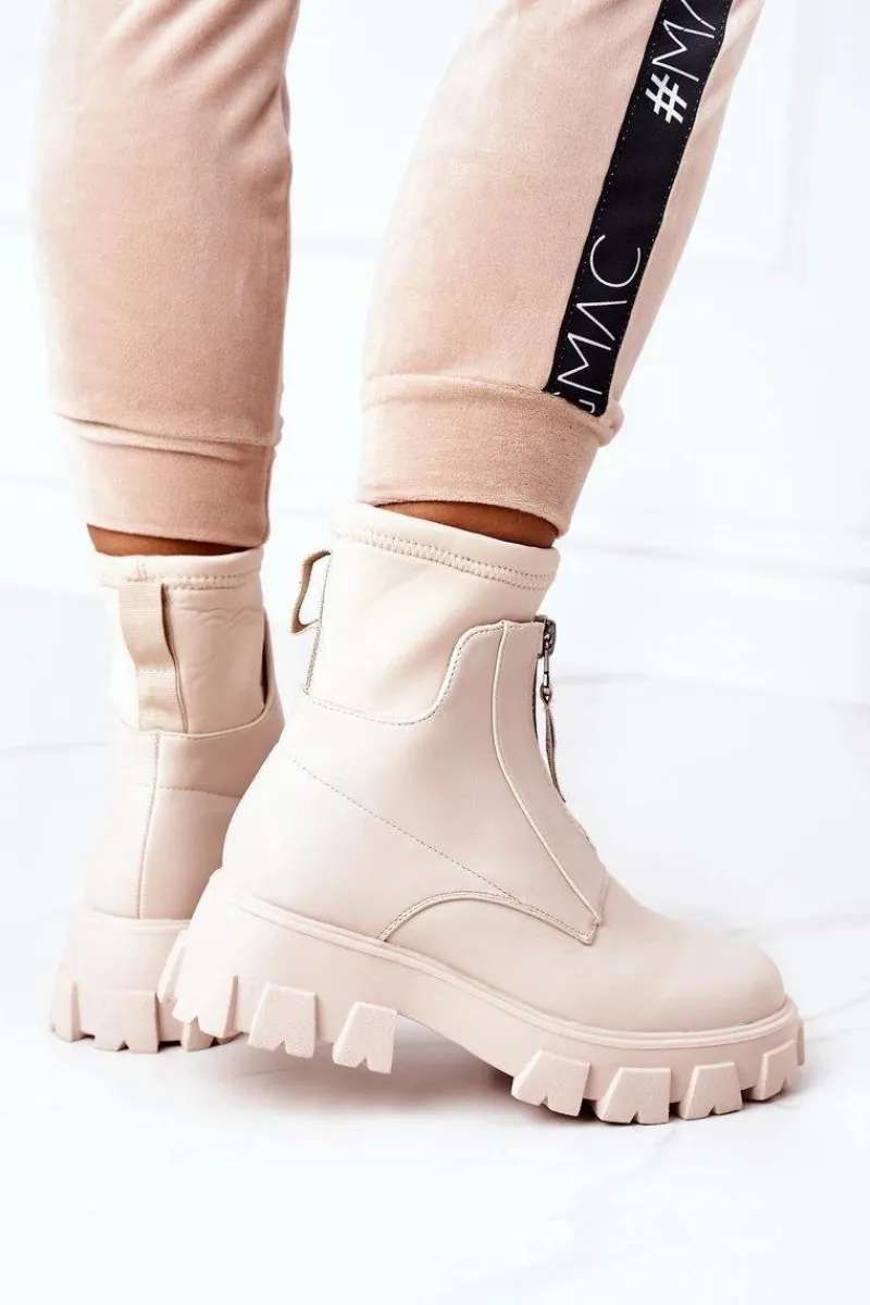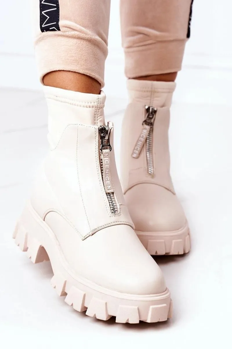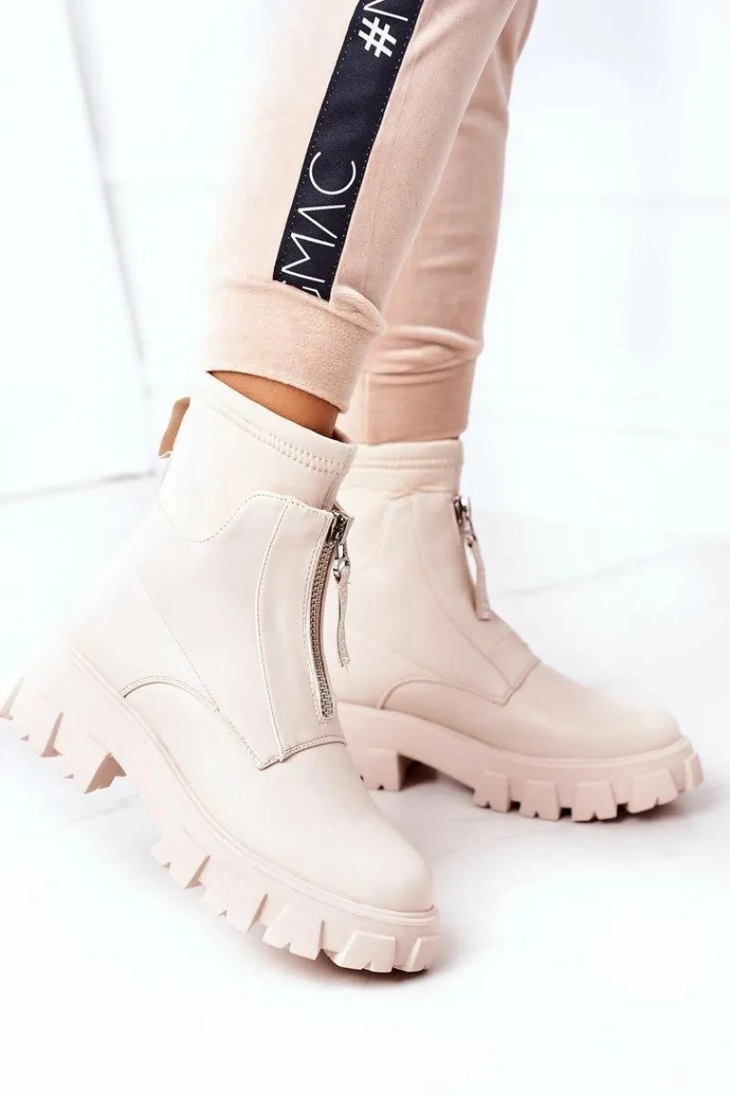 Piękne botki damskie z elastyczną, materiałową cholewką. Buty są wykonane z eko skóry. Zakładanie ułatwi wszyty suwak. Przy wyborze rozmiaru prosimy sugerować się tabelą rozmiarów.