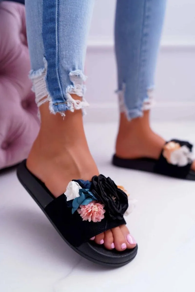 Discount Damskie Klapki Z Kwiatem Czarne Della Damskie Klapki Damskie Klasyczne
