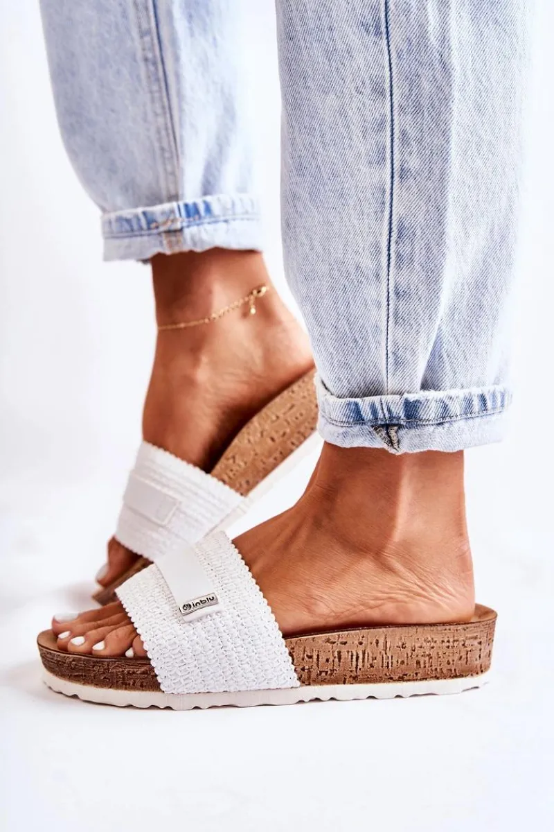 Modne klapki od marki INBLU. Wykonane z wierzchu z połączenia wysokiej jakości eko skóry oraz tworzywa sztucznego. Model wsuwany. Wkładka jest profilowana, dostosowana do anatomicznego kształtu stopy, a także wykonana z naturalnego zamszu. Podeszwa wraz z platformą wykonana jest z połączenia pianki oraz tworzywa sztucznego. Dzięki zastosowaniu odpowiedniej technologii i materiałów, klapki zapewniają wysoki komfort użytkowania i wygodę. Przy wyborze rozmiaru prosimy sugerować się tabelą rozmiarów.