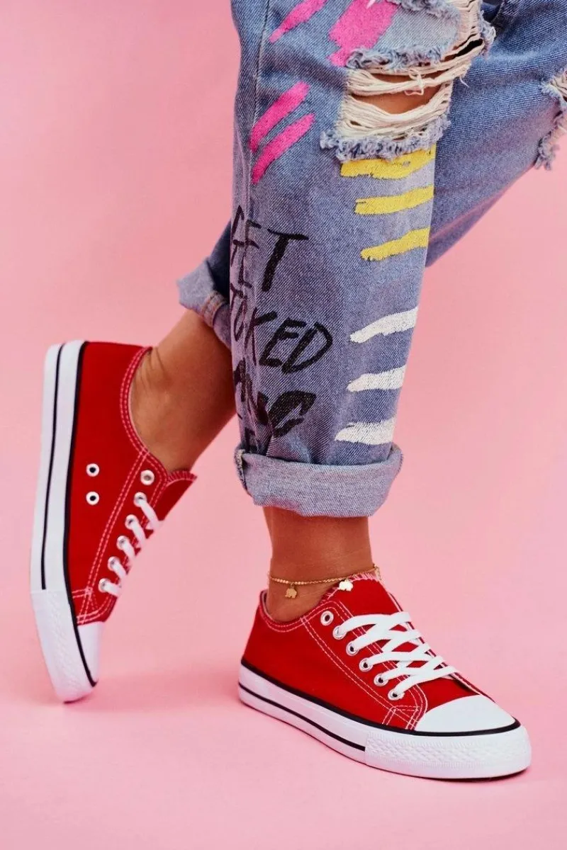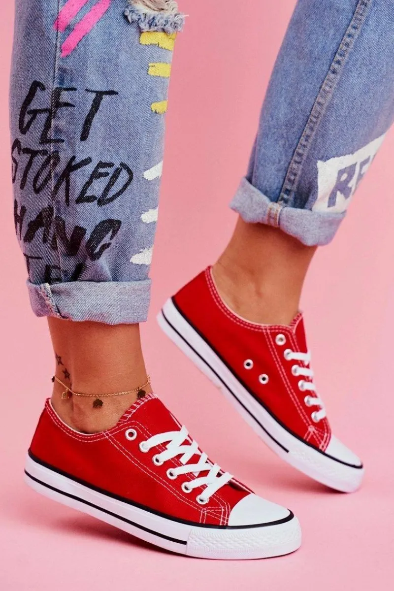 Klasyczne trampki damskie. Buty posiadają gumową podeszwę oraz miękką cholewkę. Ponadczasowy model, dostępny w wielu pięknych kolorach! Przy wyborze rozmiaru prosimy sugerować się tabelą rozmiarów.