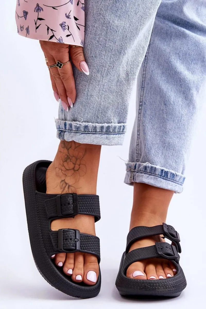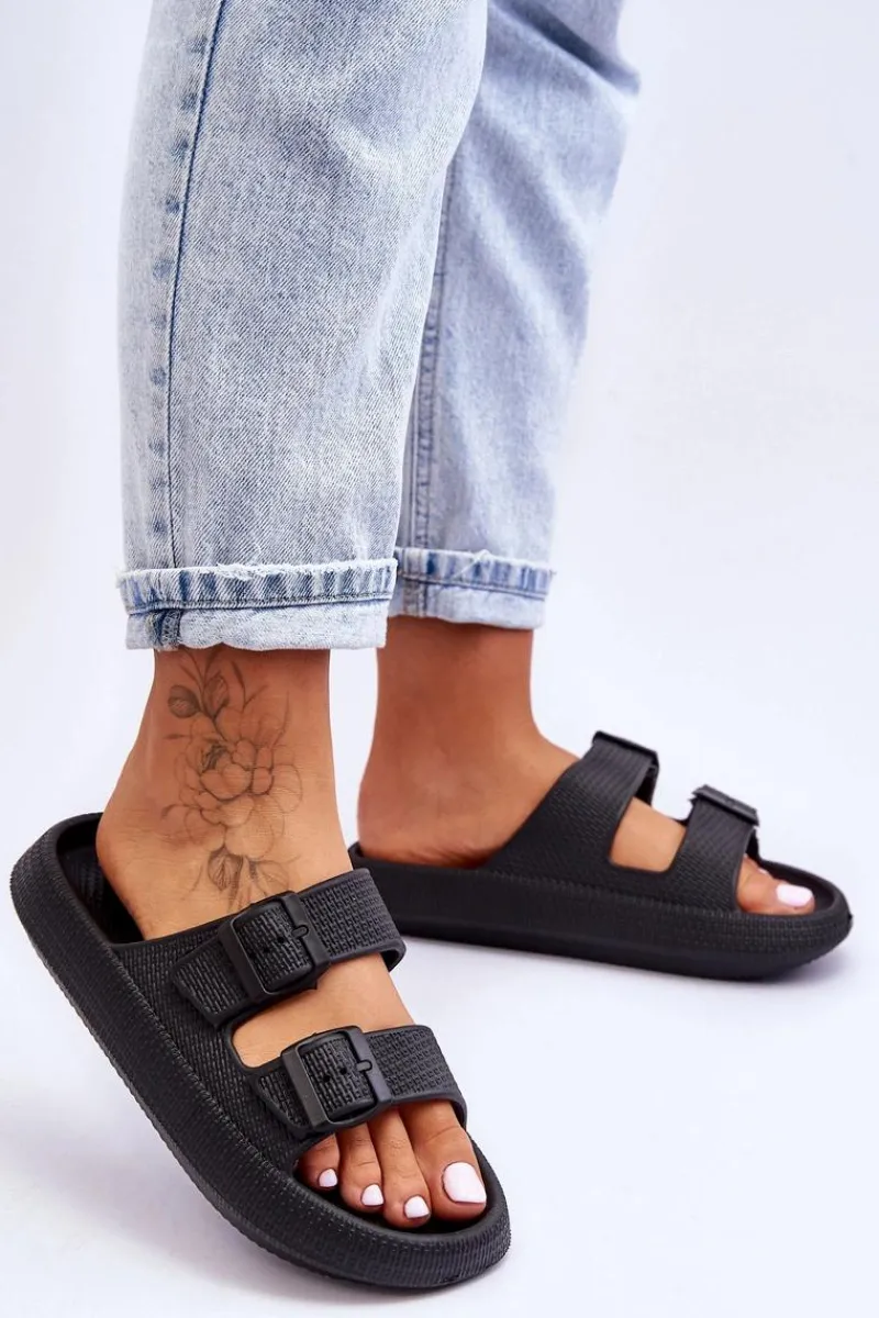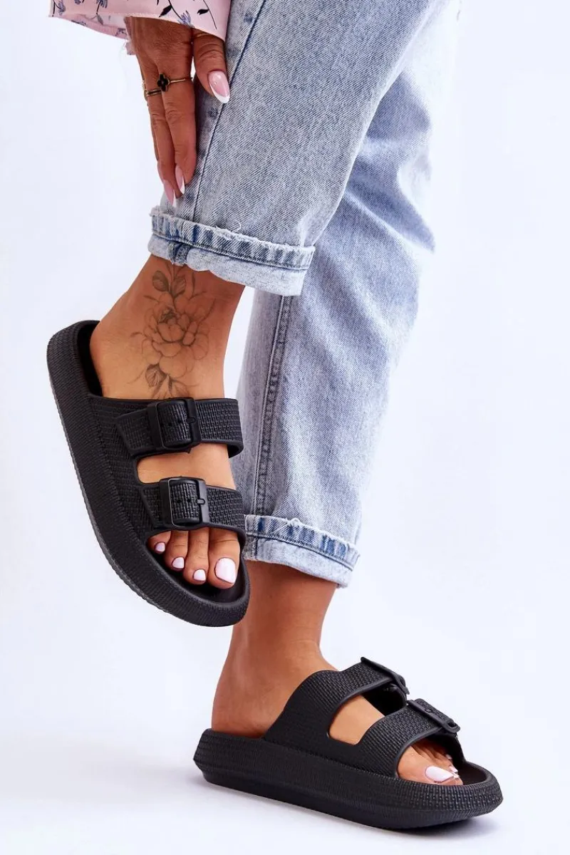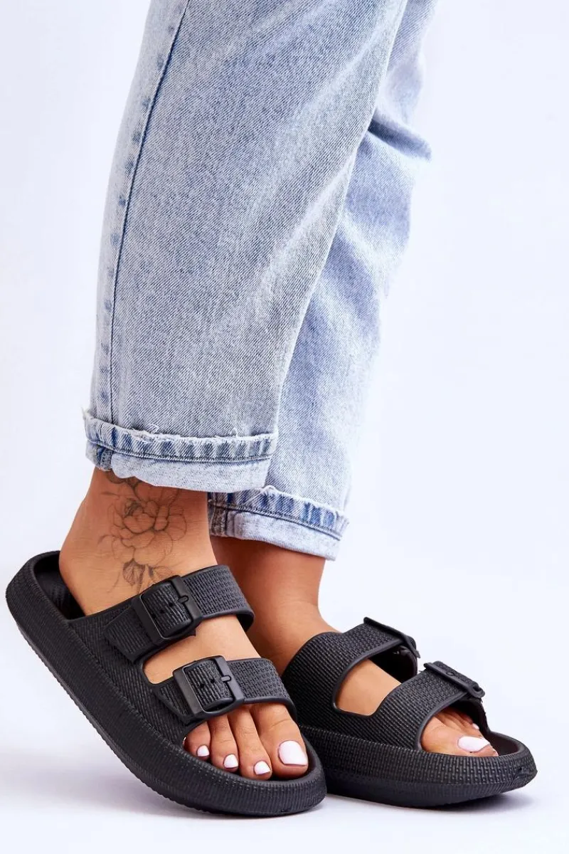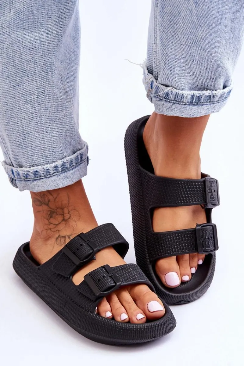 Discount Damskie Piankowe Klapki Z Paskami Czarne Sharmen Damskie Klapki Basenowe|Klapki Damskie Klasyczne