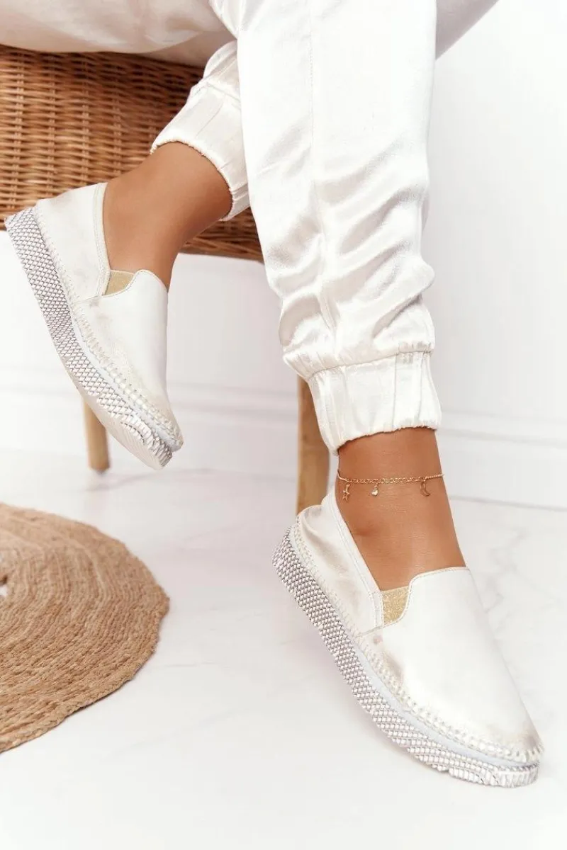 Discount Damskie Półbuty Wsuwane Skórzane Złote 03512-25 Damskie Półbuty Skórzane|Botki Skórzane