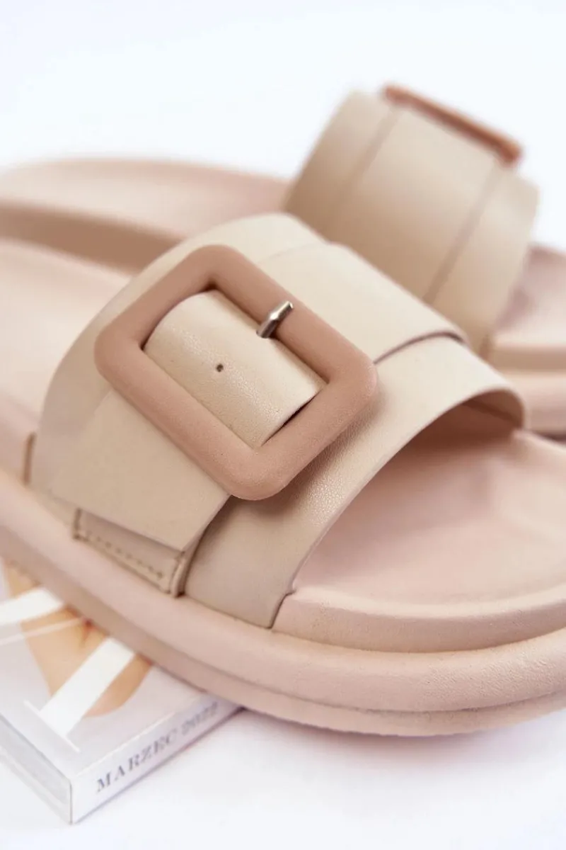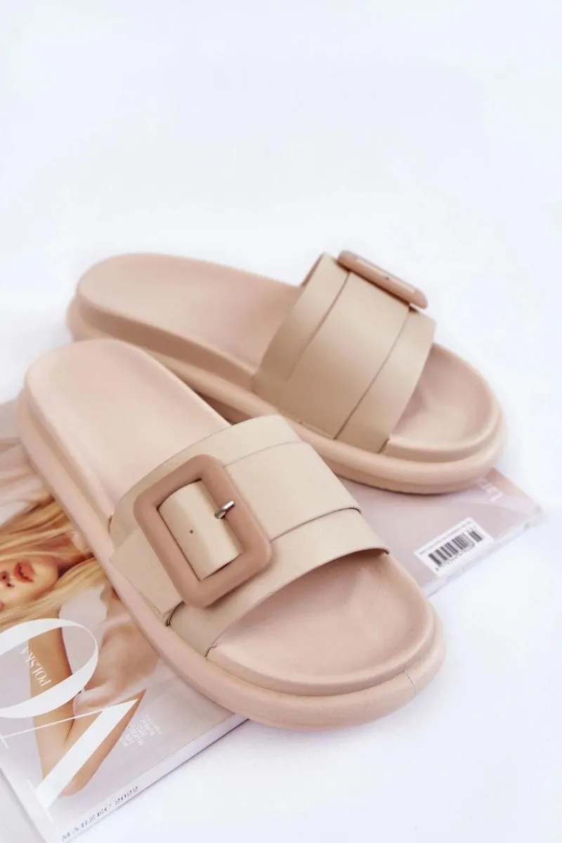 Klasyczne i modne damskie klapki zostały wykonane z eko skóry. Wkładka oraz podeszwa zostały wykonane z gumowego tworzywa. Posiadają sprzączkę na pasku z przodu. Te buty to świetna propozycja dla kobiet ceniących sobie komfort w letnie dni. Buty zostały dodatkowo osadzone na platformie. Koniecznie sprawdź całą naszą ofertę klapek damskich. Przy wyborze rozmiaru prosimy sugerować się tabelą rozmiarów.