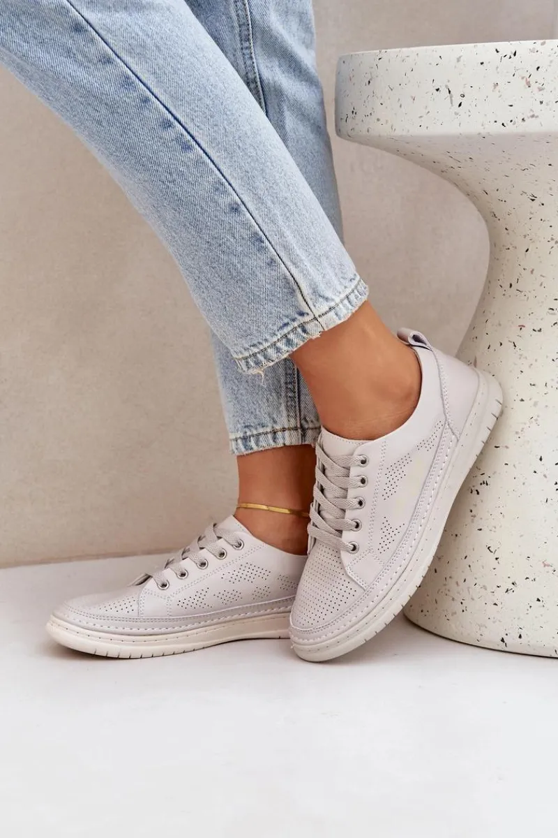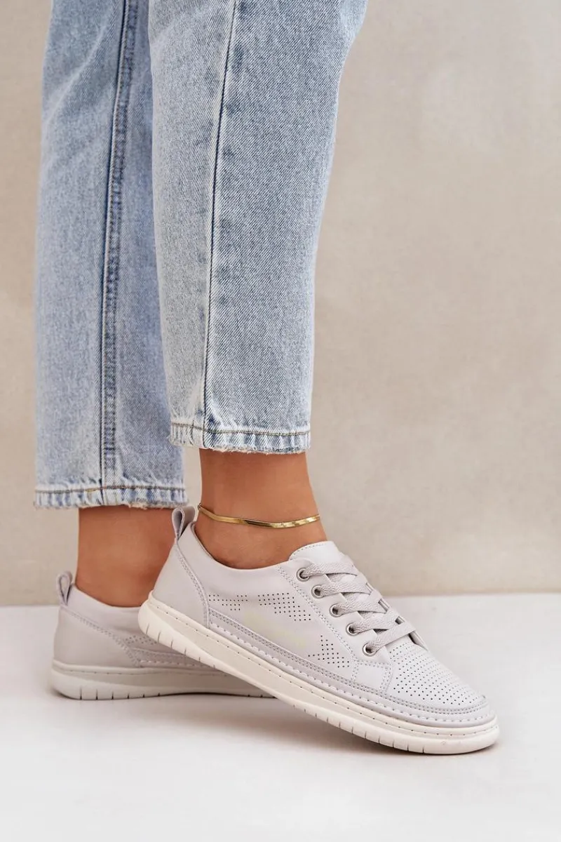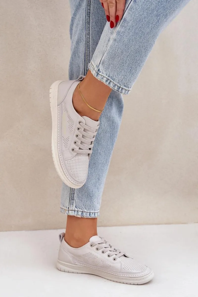 Discount Damskie Skórzane Tenisówki Szare Cloesa Damskie Trampki Damskie Niskie