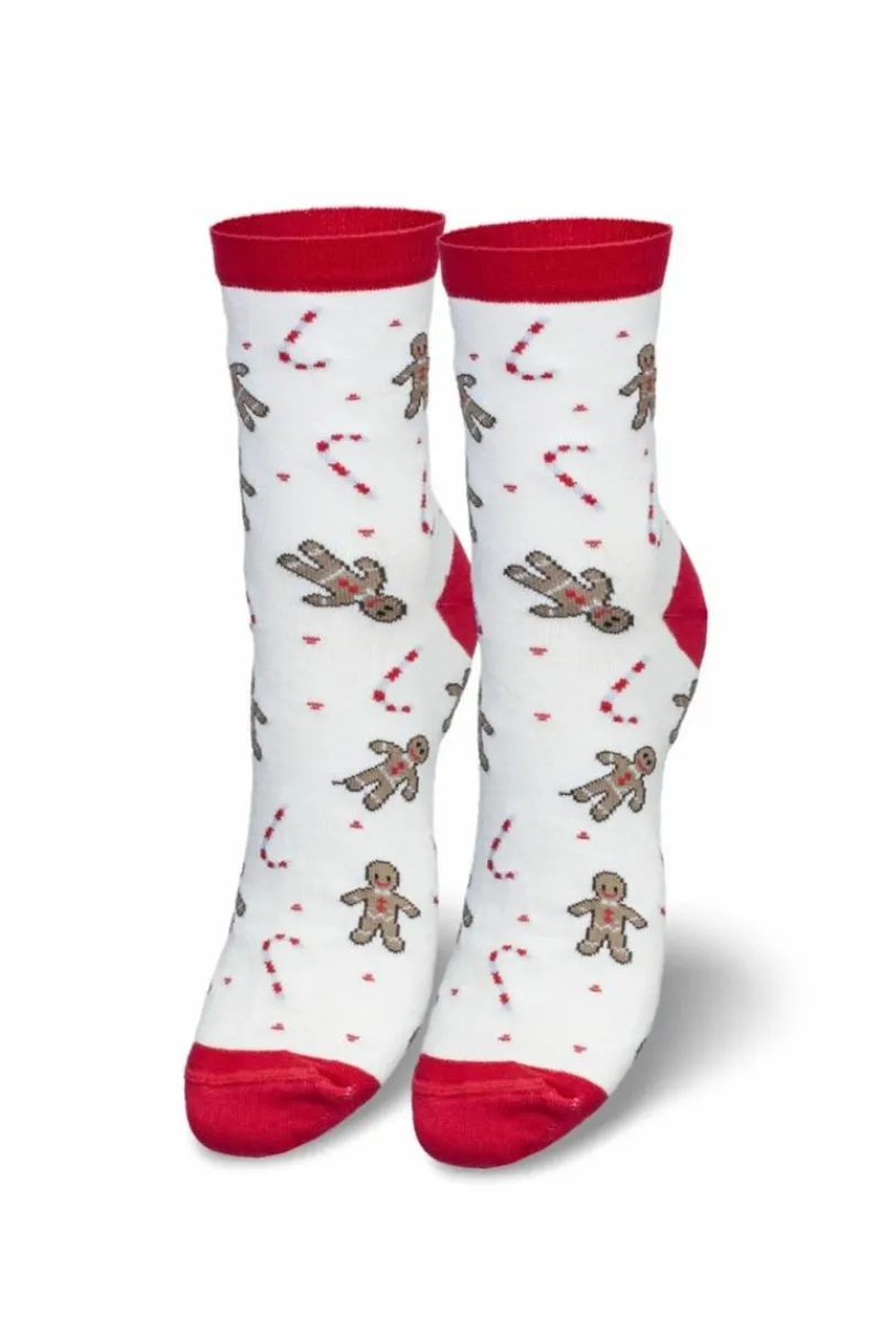 Discount Damskie Świąteczne Skarpetki Ciasteczkowe Ludziki Białe Skarpetki|Skarpetki