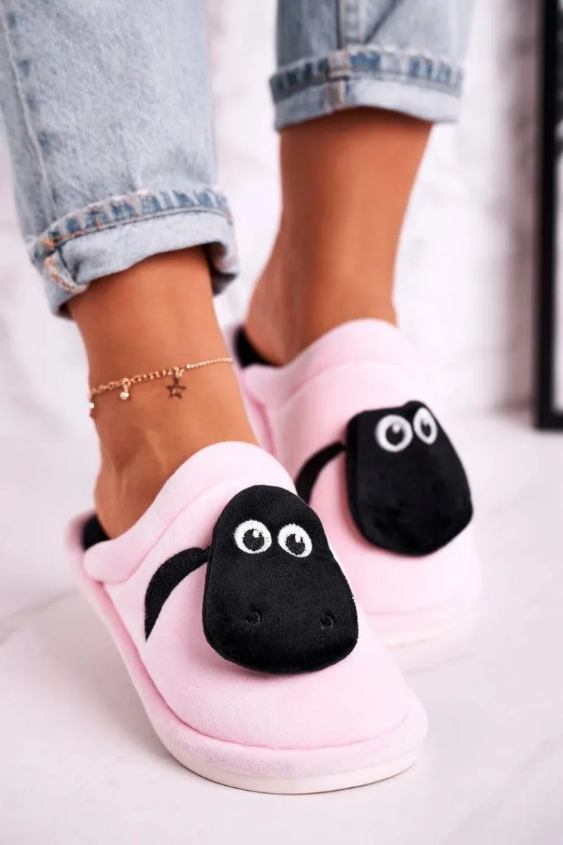 Discount Damskie Welurowe Papcie Z Owieczką Jasno Różowe Charlie Damskie Kapcie Klasyczne