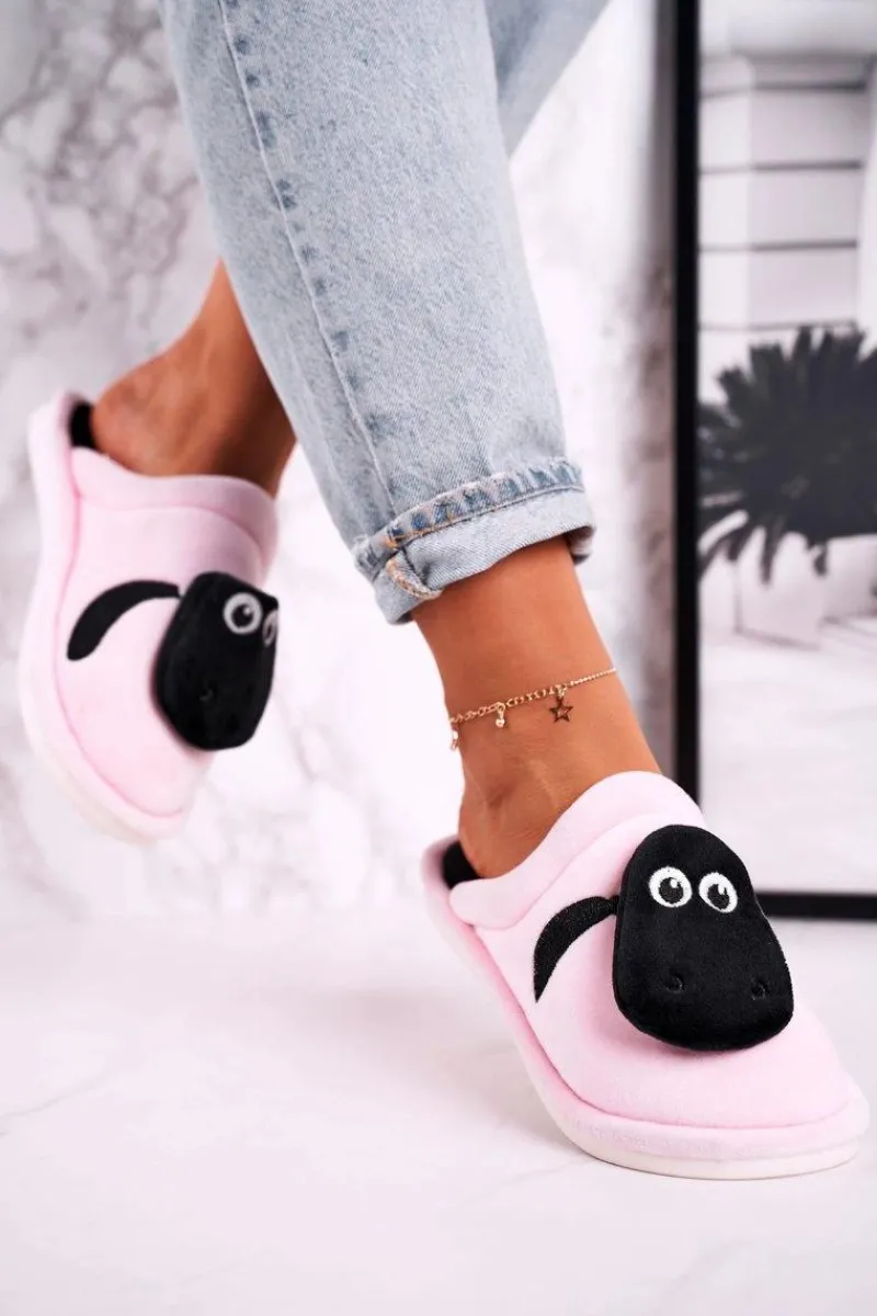 Ciepłe i niezwykle wygodne papcie domowe w różowym kolorze. Uszyte z miękkiego futerka. Na elastycznej, gumowej podeszwie. Na wierzchu klapka postać owieczki z bajki. Idealnie nadają się również na prezent.