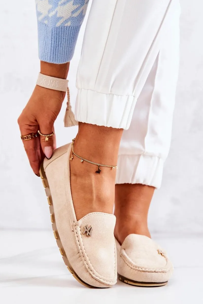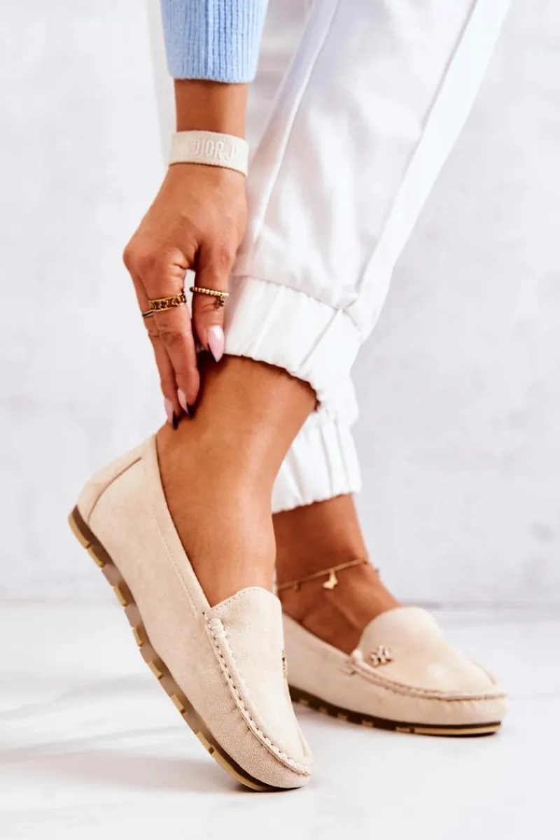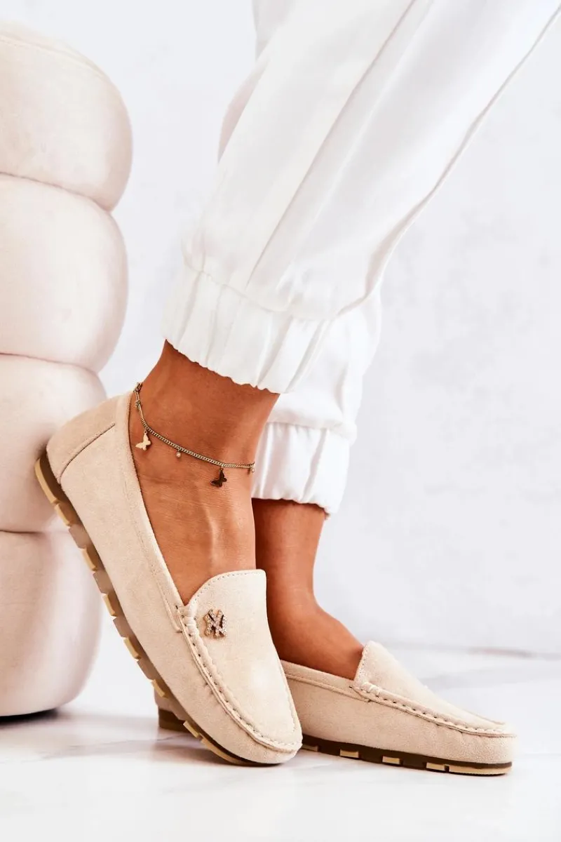 Discount Damskie Zamszowe Mokasyny Beżowe Madelyn Damskie Mokasyny Damskie Zamszowe