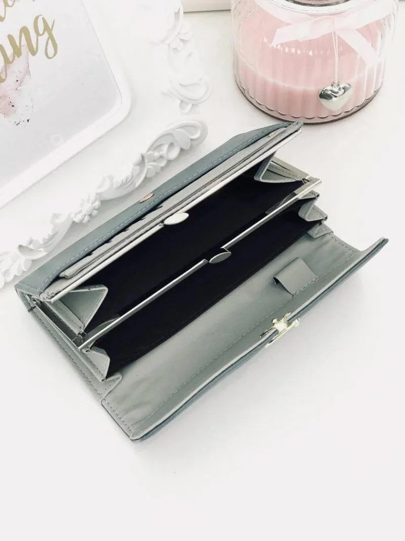 Przedstawiamy piękne portfele dla eleganckich Pań, dostępne w kilku cudownych kolorach. Produkty te charakteryzuje wyjątkowa prostota i elegancja. Wykonywane są przy użyciu najwyższej klasy materiałów. Staranne i piękne wykończenie każdego portfela oddaje niesamowitą dbałość o detale oraz modowy gust. Portfel posiada zapinanie na zatrzask. Wewnątrz znajdują się dwie kieszonki, jedna zapinana na zamek, aż 8 przegródek na karty oraz miejsce na zdjęcie.