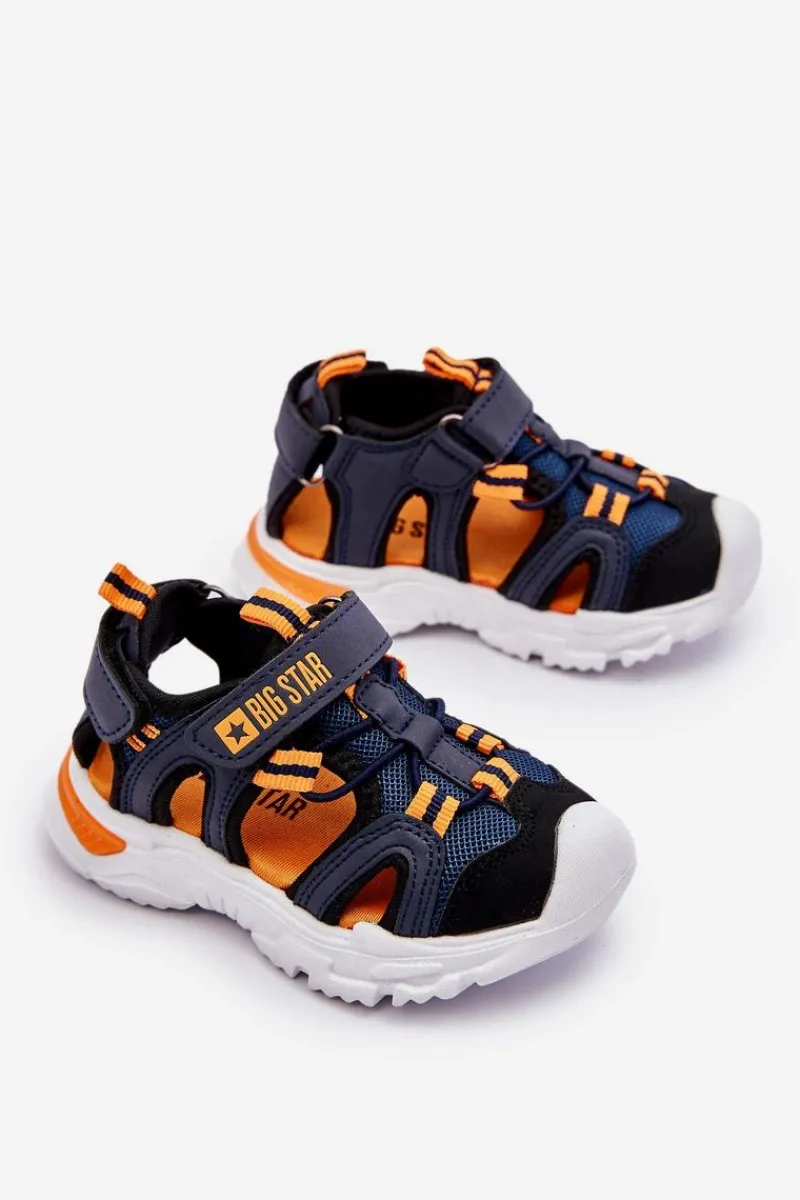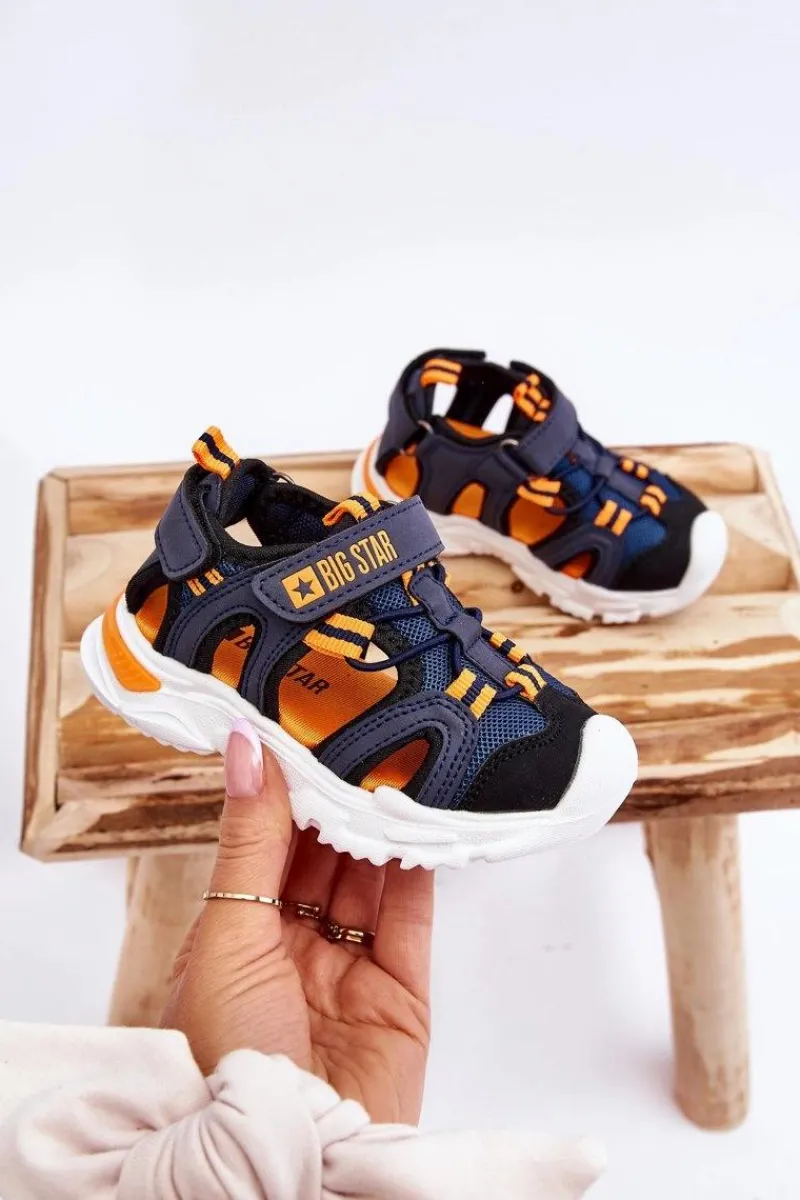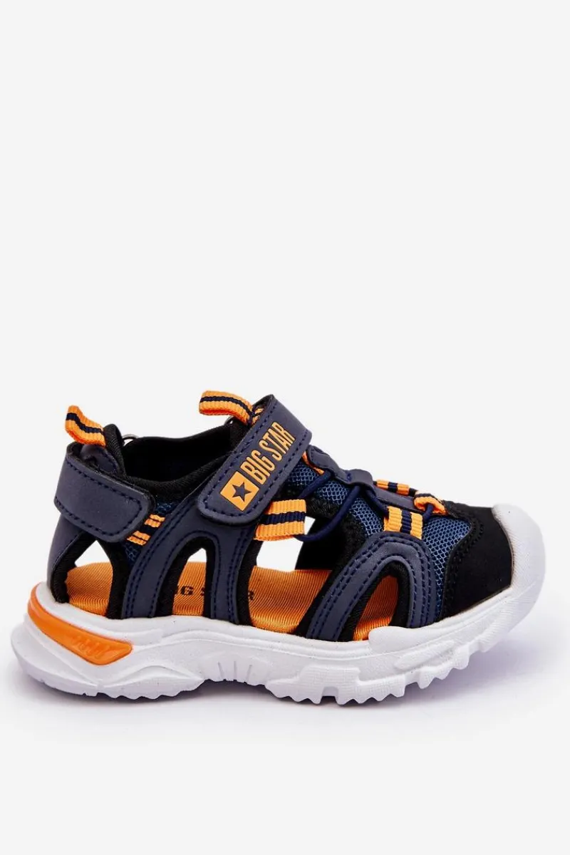 Wyjątkowo lekkie sandałki dziecięce od marki Big Star zostały wykonane z eko skóry. Dodatkowo posiadają wzmacniany nosek. Zapinane z przodu oraz przy zapiętku na rzep. Wkładka wykonana z tkaniny. Sandałki osadzono na platformie. Model ten jest idealny na upalne dni. Koniecznie sprawdź także pozostałe modele sandałek marki BIG STAR! Przy wyborze rozmiaru prosimy sugerować się tabelą rozmiarów.